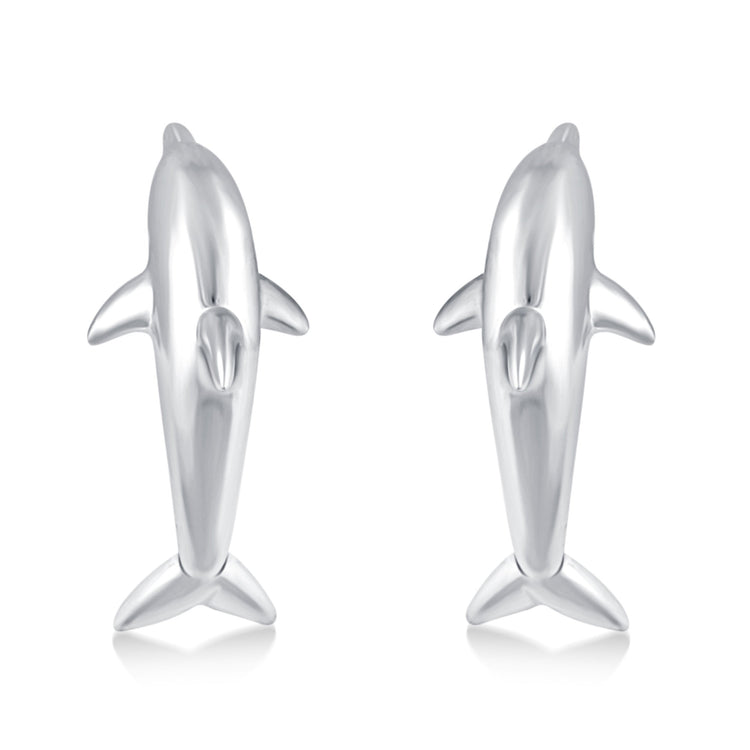 Mini Dolphin Love and Peace Lucky Charm Stud Earrings in 925 Sterling Silver Jewelry