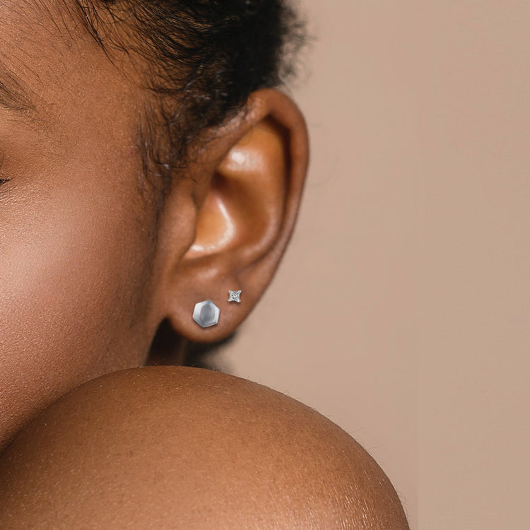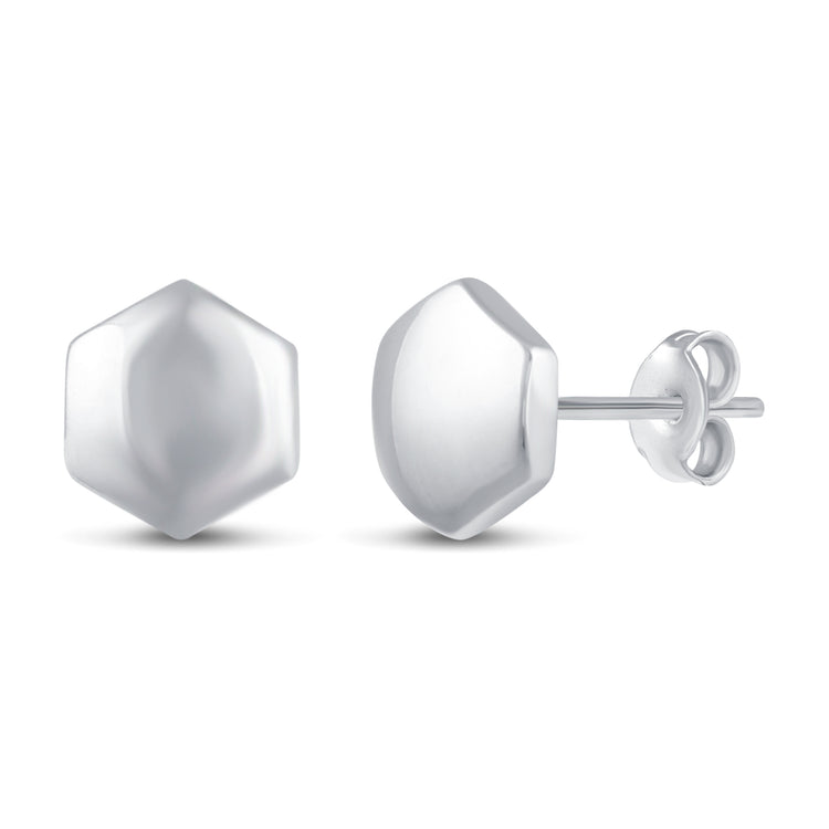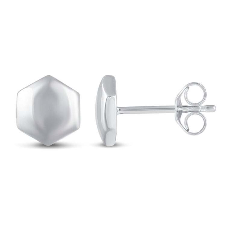 Solid Disk Plain Hexagon Geometric Stud Earrings in 925 Sterling Silver
