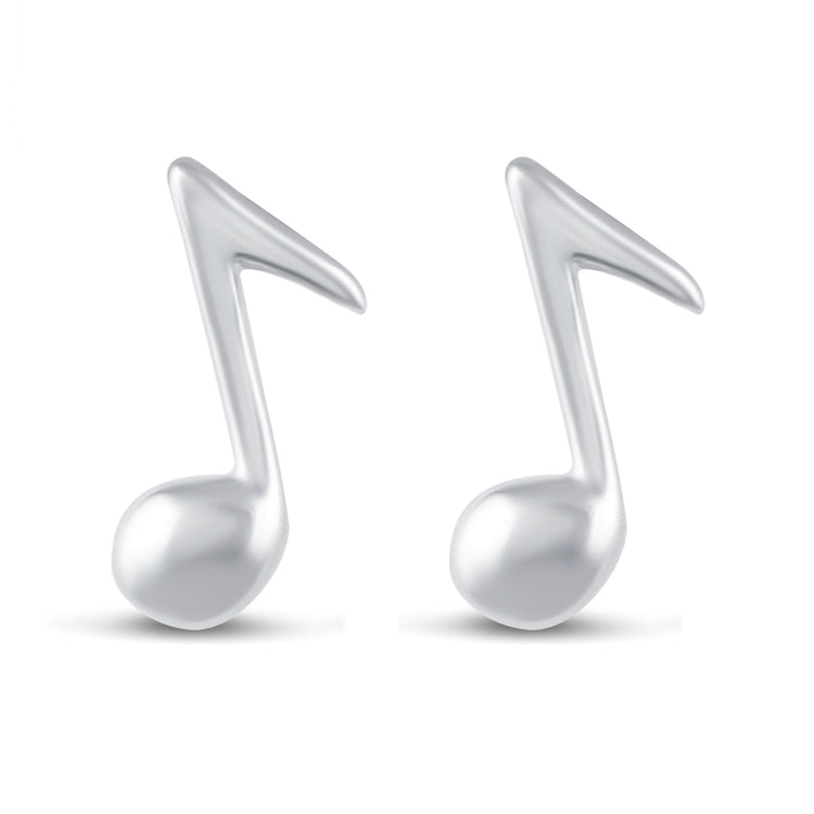 Solid Disk Plain Music Eights Note Shape Stud Earrings in 925 Sterling Silver