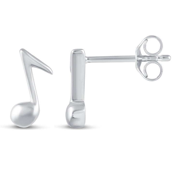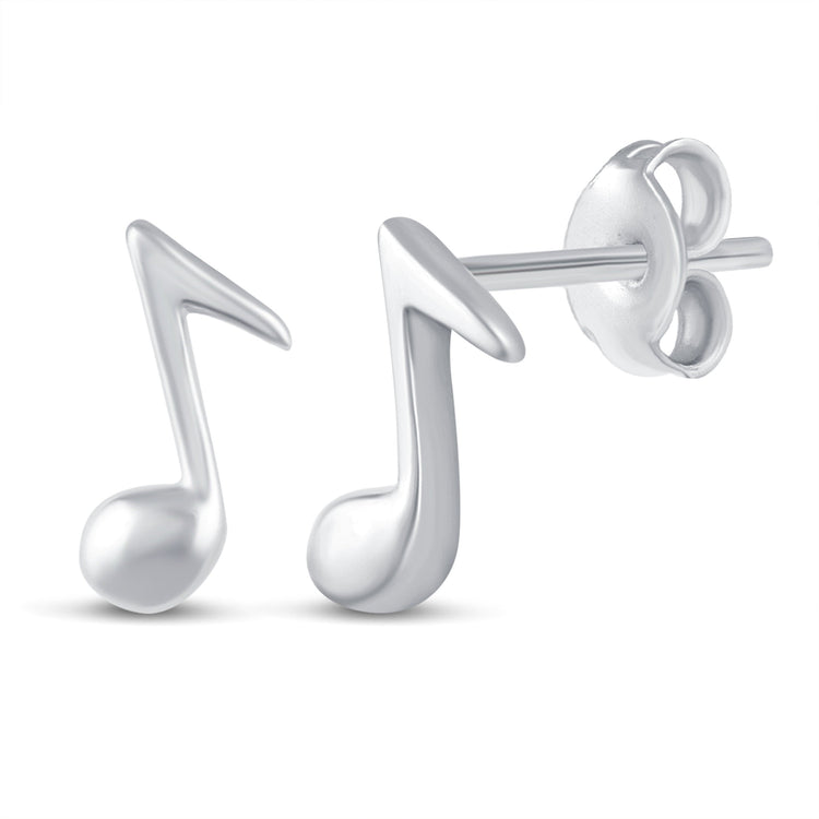 Solid Disk Plain Music Eights Note Shape Stud Earrings in 925 Sterling Silver Jewelry for Women and Girls with Push Backs post