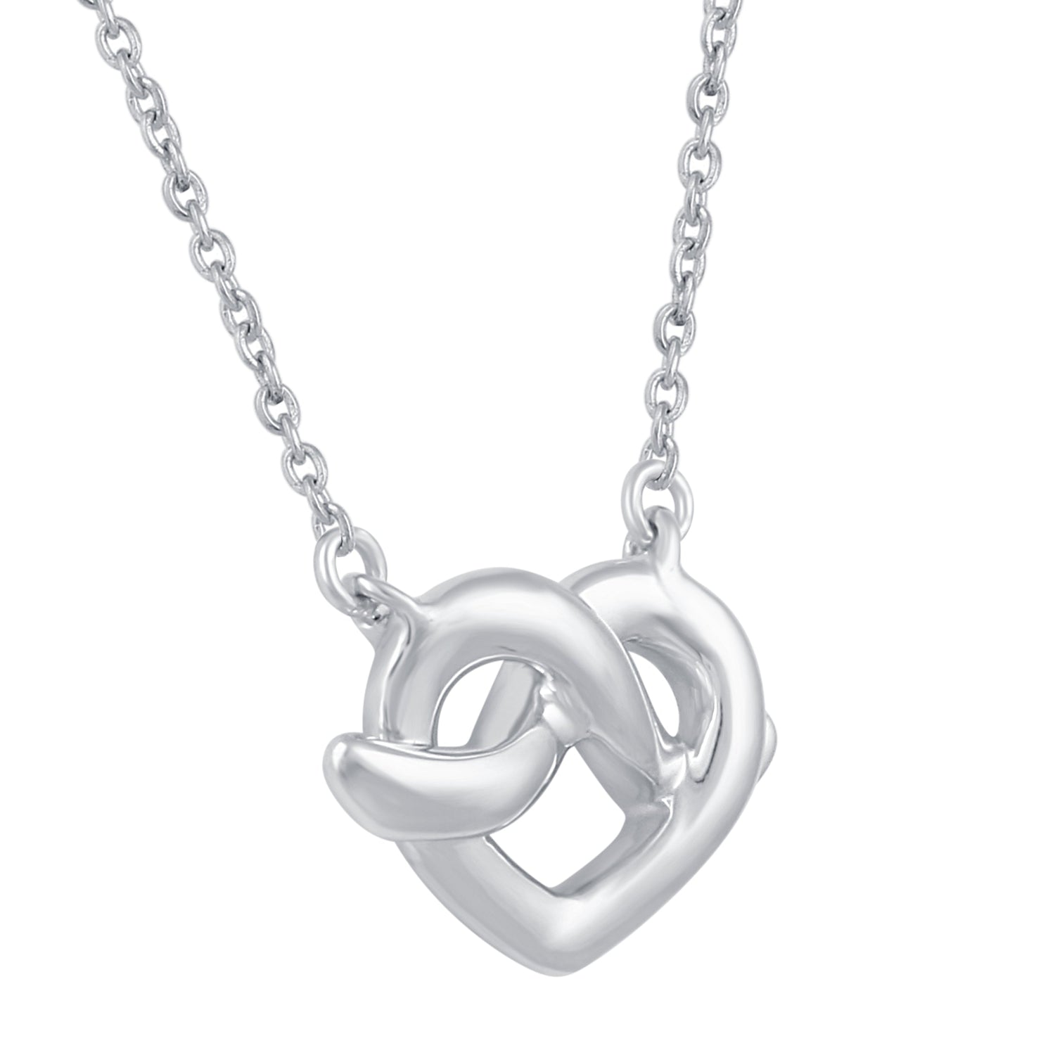 This lovely necklace from the Prime & Pure LOVE COLLECTION features a heart entwined into a knot, set in a beautiful sterling silver finish. Crafted with a pretty heart, it's nothing short of stylish.