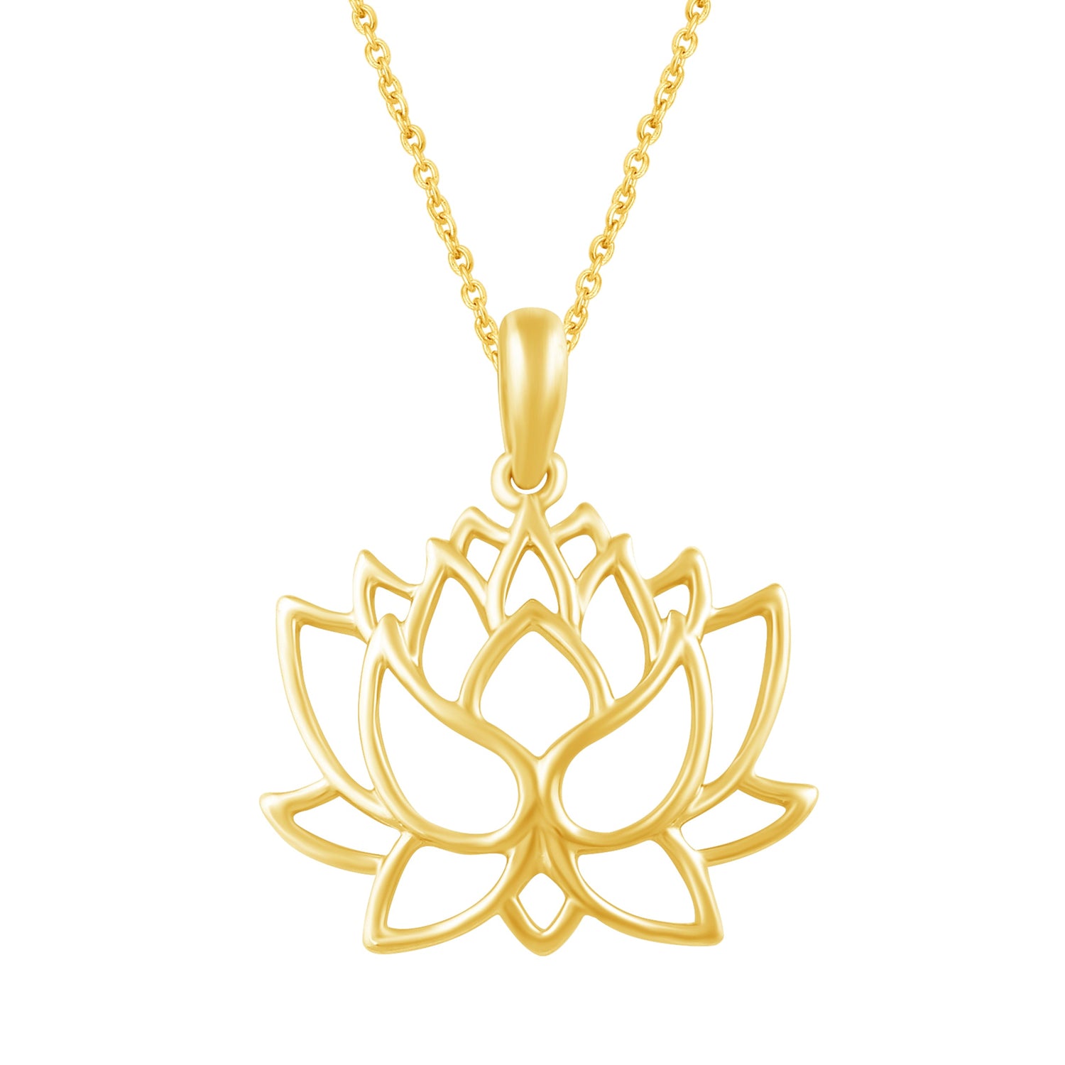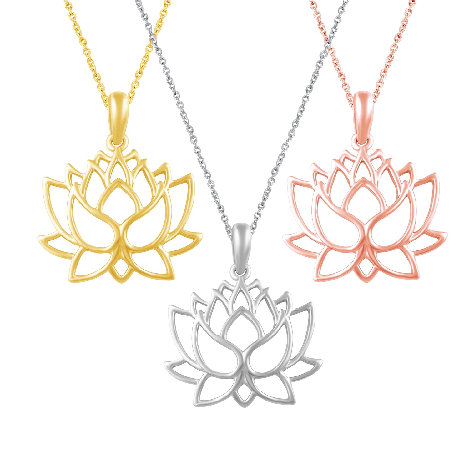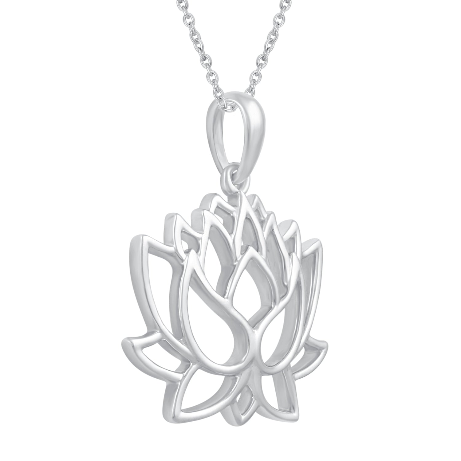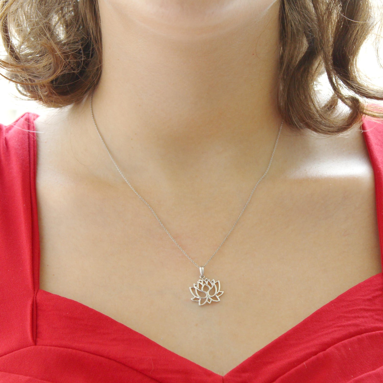 Open Lotus Flower Charm Necklace Pendant in 925 Sterling Silver