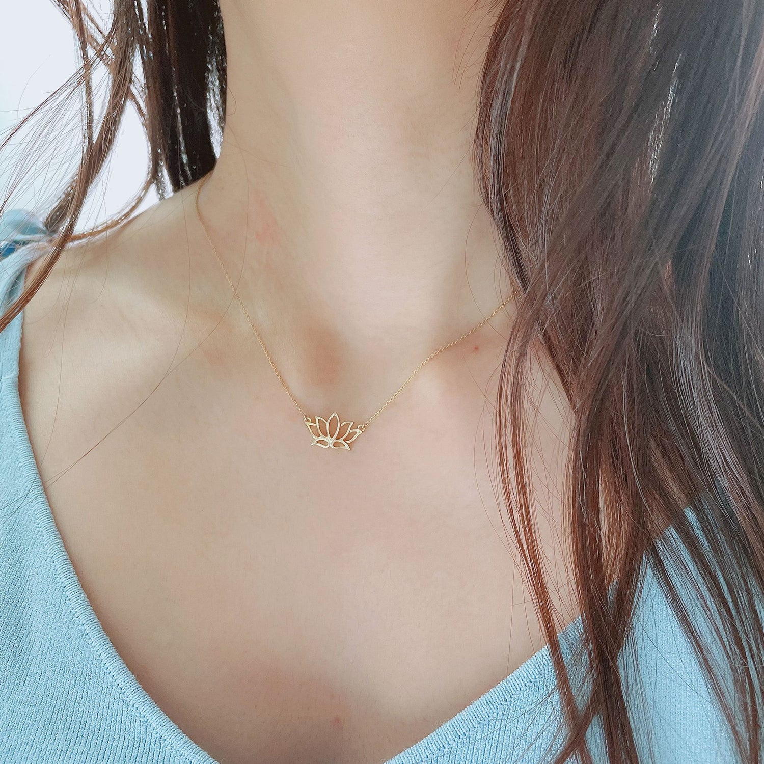 Tiny Lotus Charm Necklace Pendant in 925 Sterling Silver