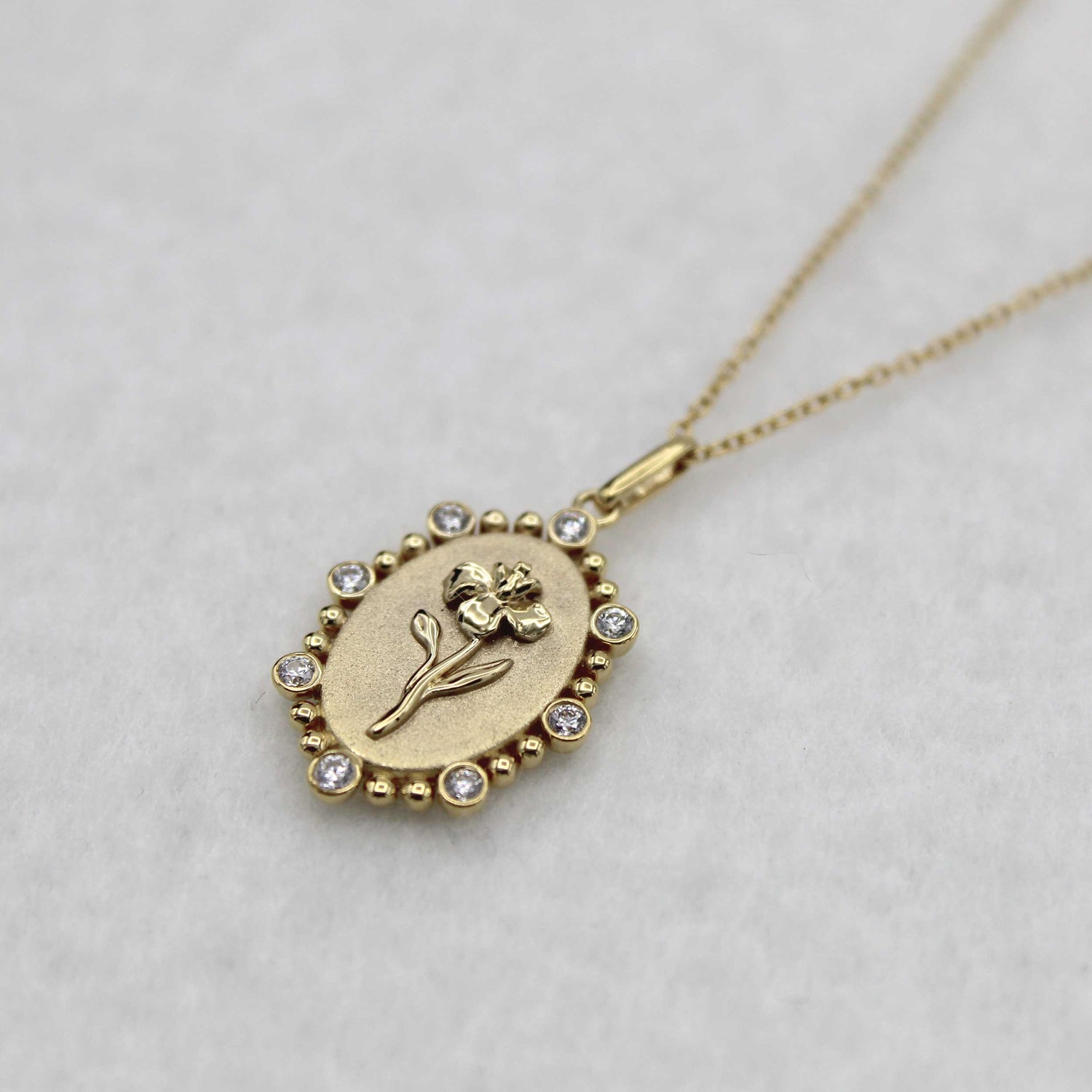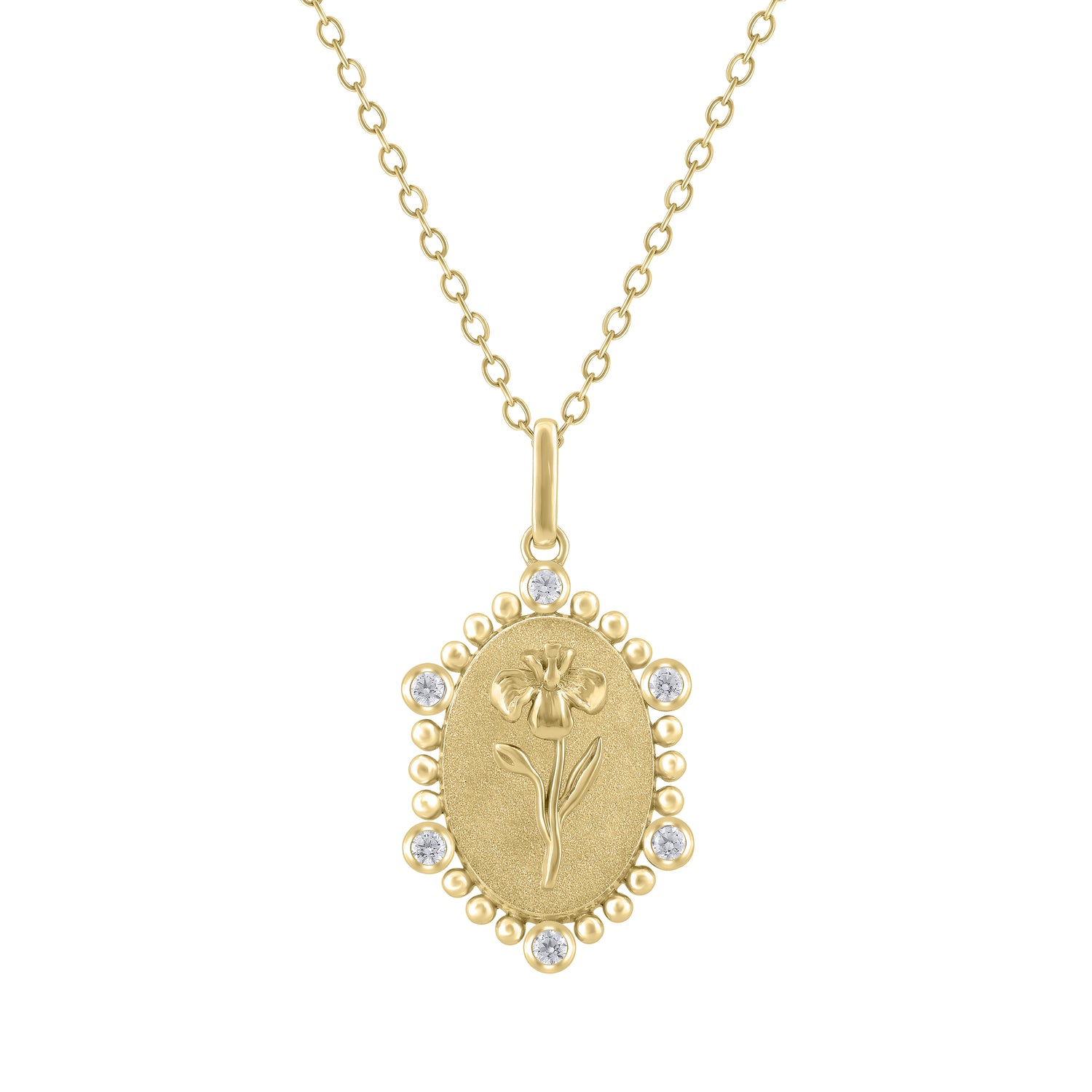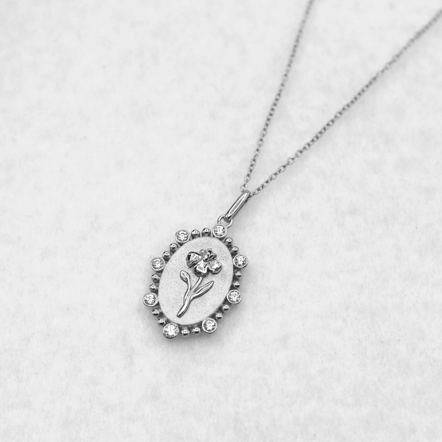 1/10 Cttw Diamond Birth Flower Necklace : February Iris available in K18 Yellow Gold vermeil and 925 Sterling Silver Rhodium Plating