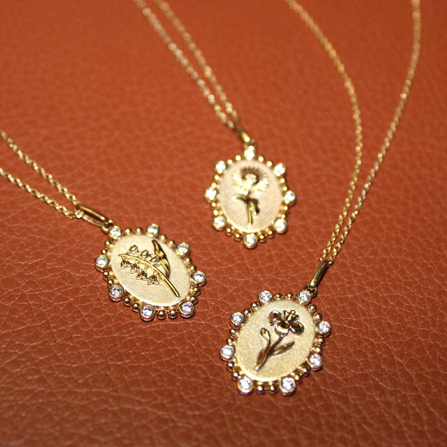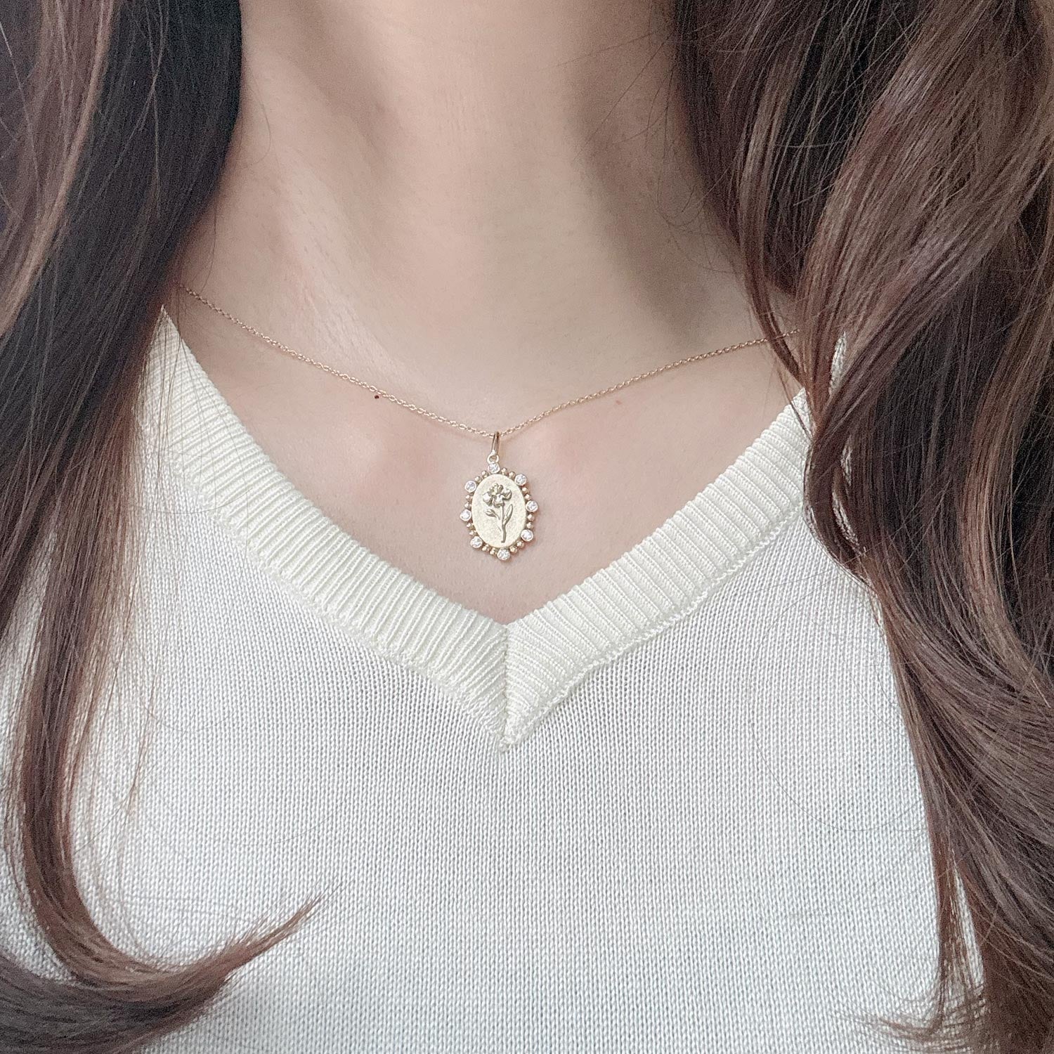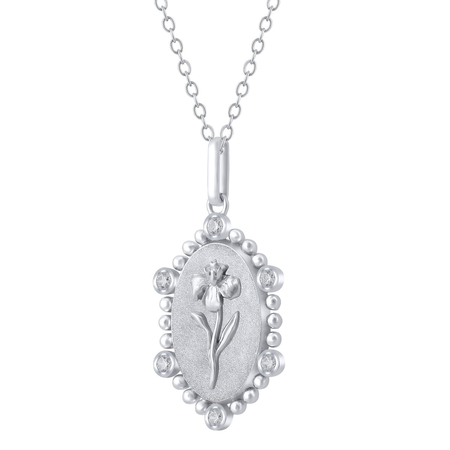 1/10 Cttw Diamond Birth Flower Necklace : February Iris available in K18 Yellow Gold vermeil and 925 Sterling Silver Rhodium Plating