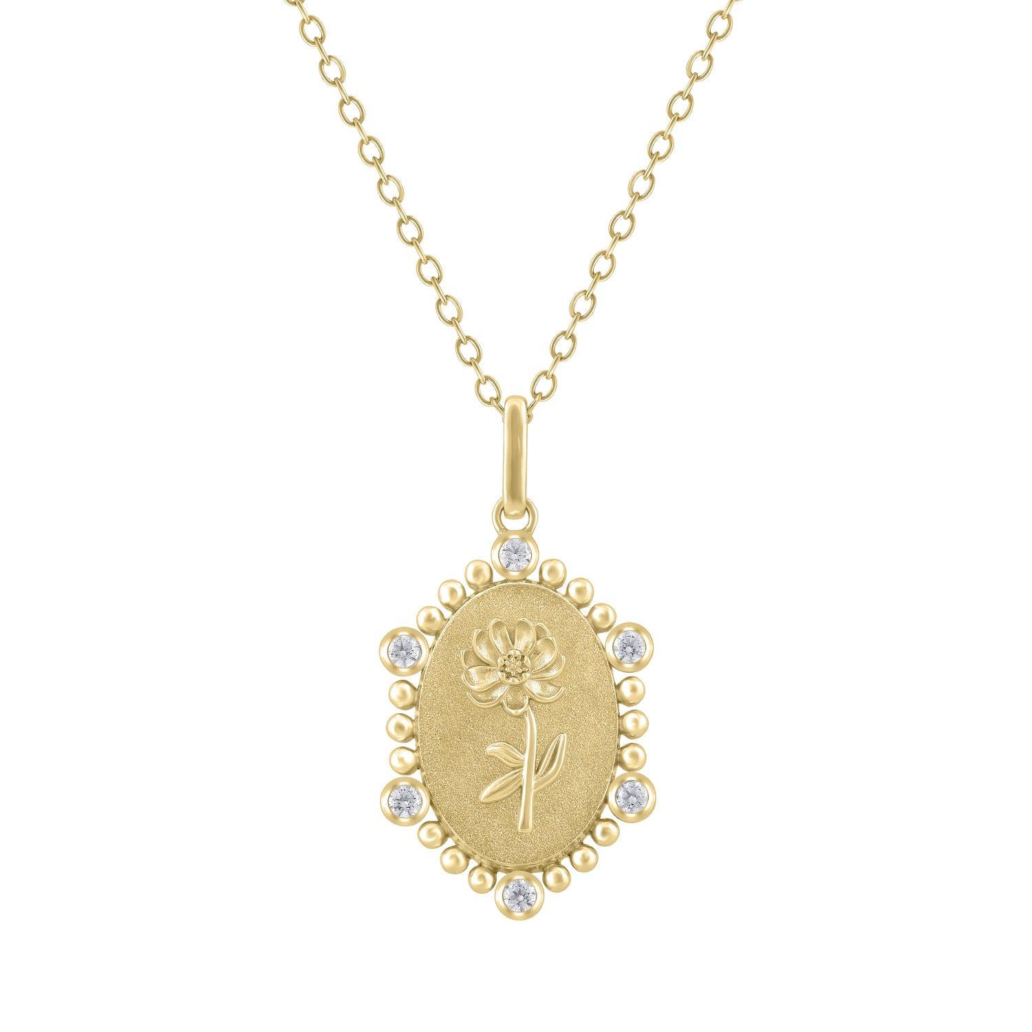 1/10 Cttw Diamond Birth Flower Necklace 18K Gold Vermeil : November Chrysanthemum