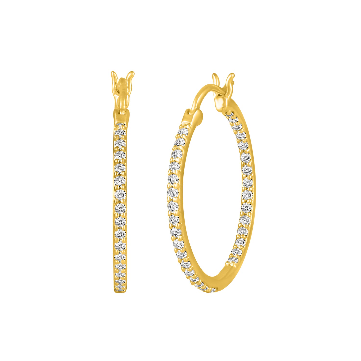 Classic and brilliant, these diamond hoop earrings feature 72 round diamonds pavé-set throughout the earrings and set in 925 Sterling silver.