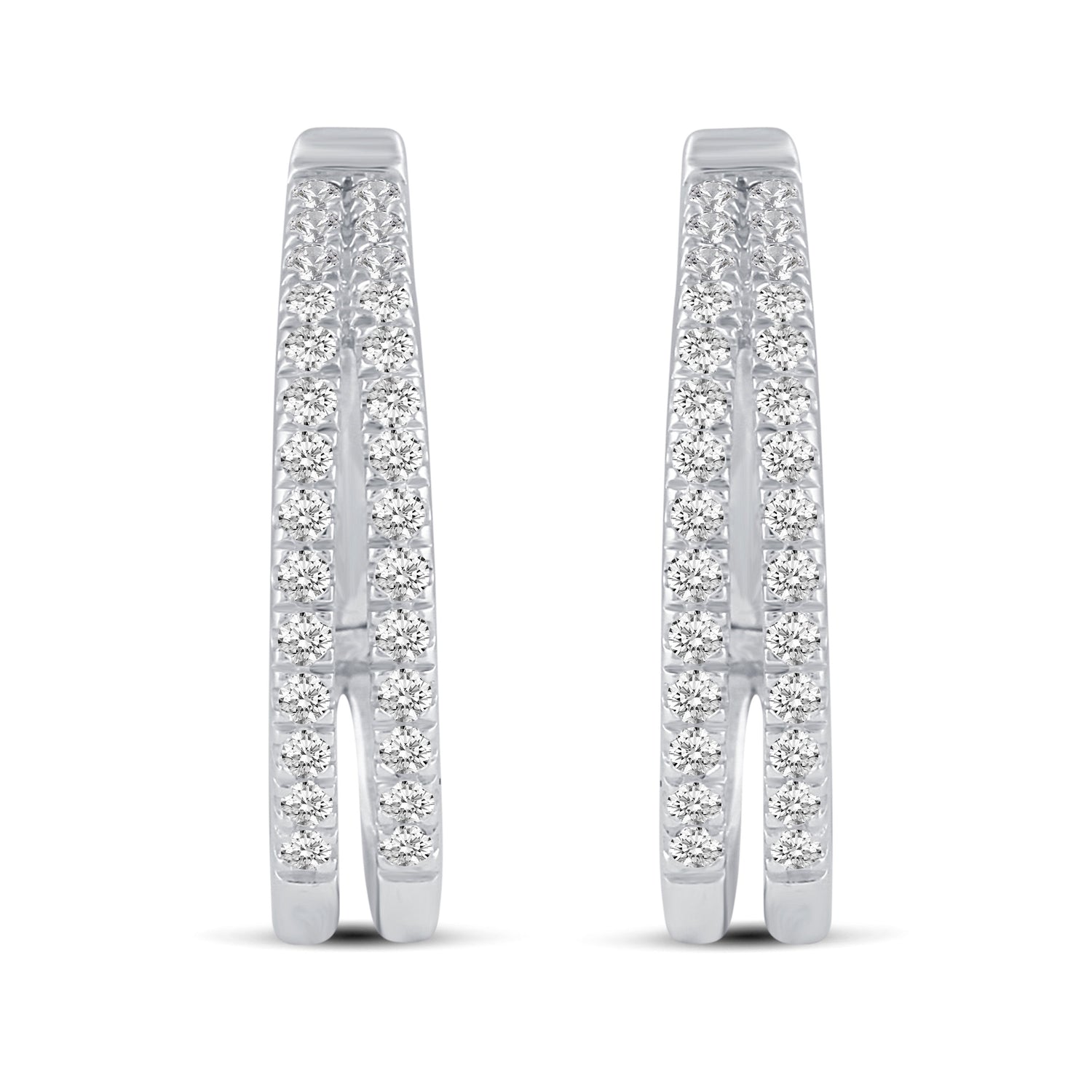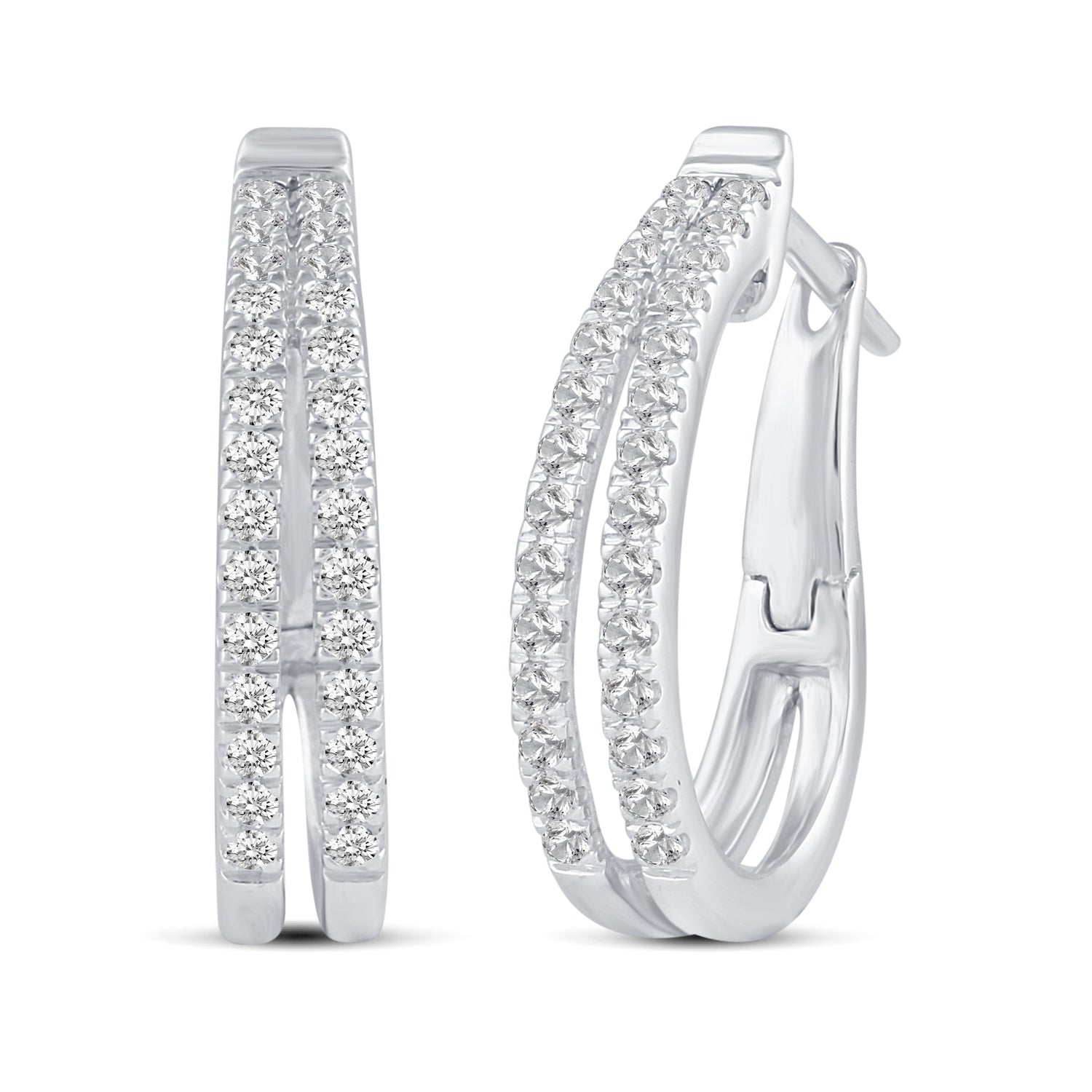 1/2 Cttw Diamond Double Row Hoop Earrings set in 925 Sterling Silver