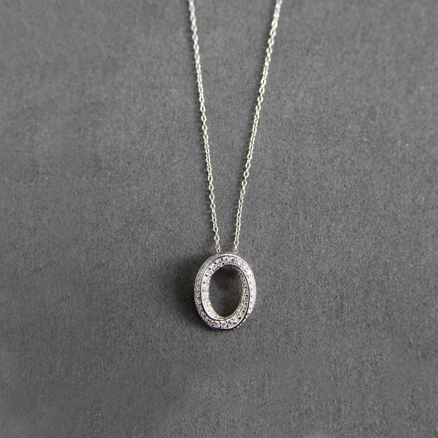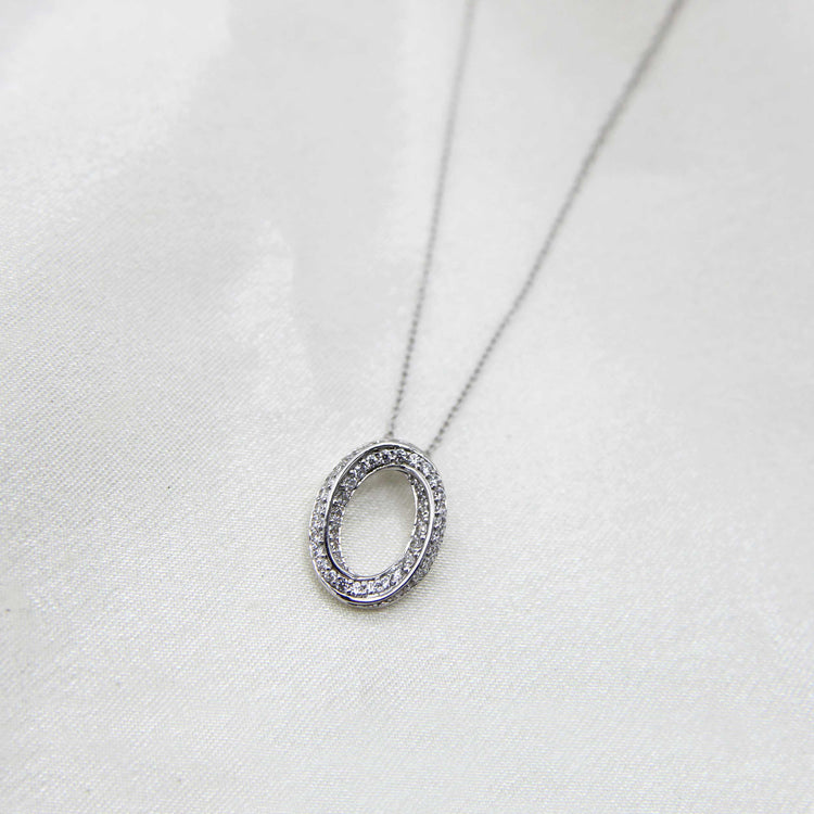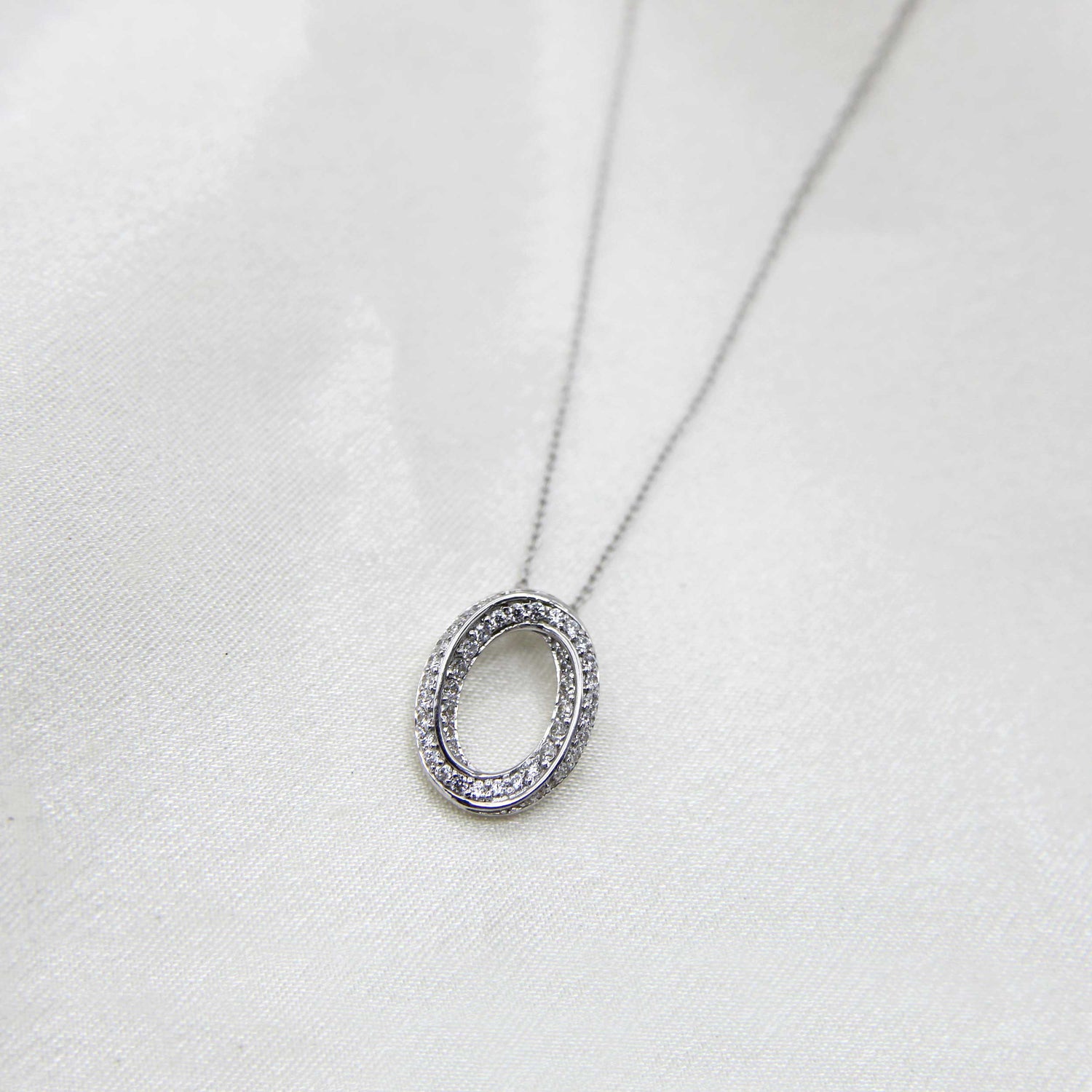 1/2 Cttw Diamond Open Oval Pave Twisted Pendant Necklace set in 925 Sterling Silver