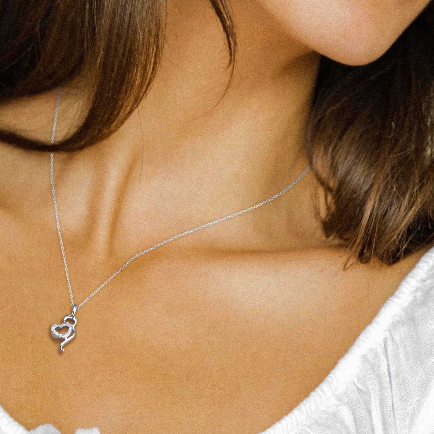 1/20 CT TW Diamond Cat Heart Pendant in Sterling Silver