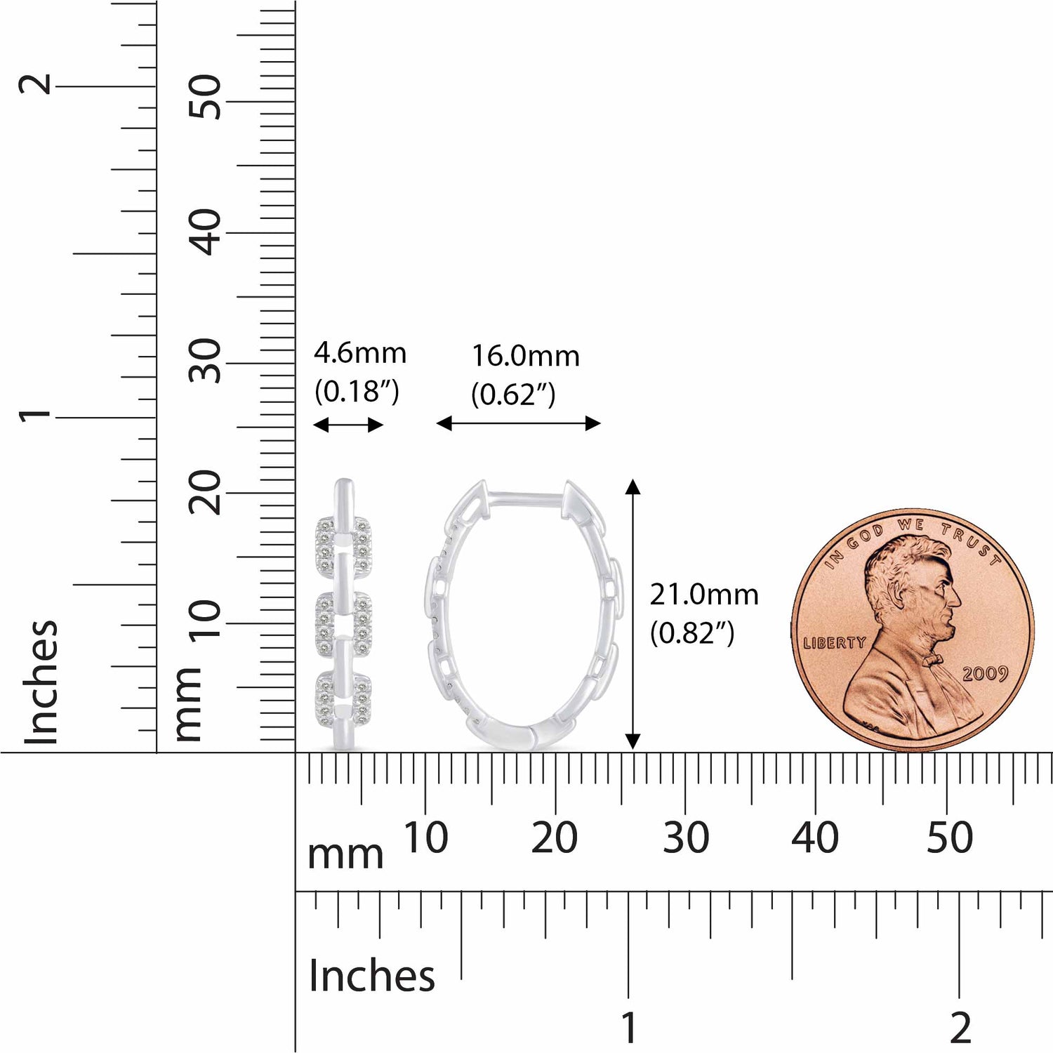 0.25 Cttw Diamond Square Chain Link Hoop Earrings set in 925 Sterling Silver