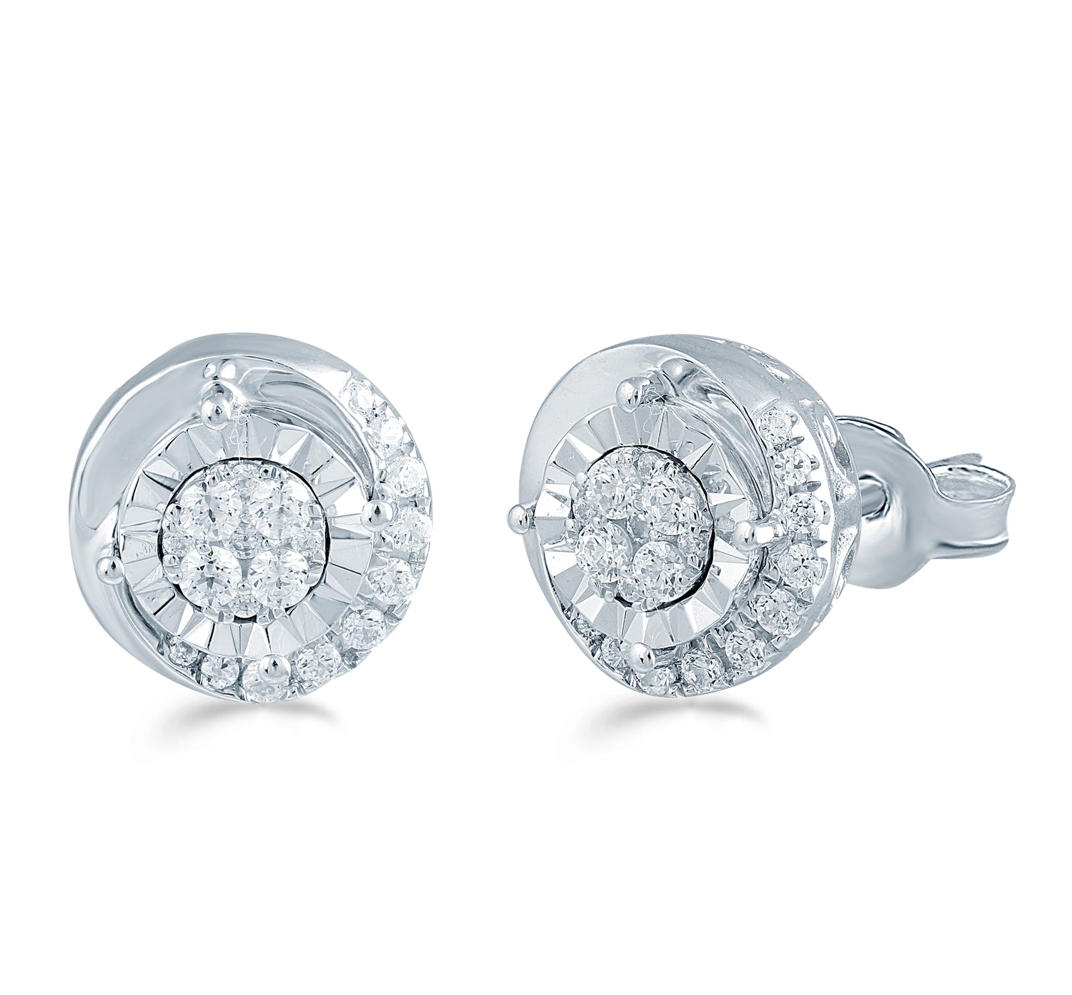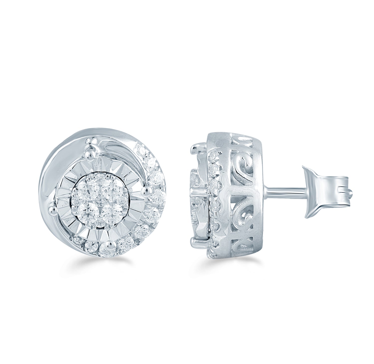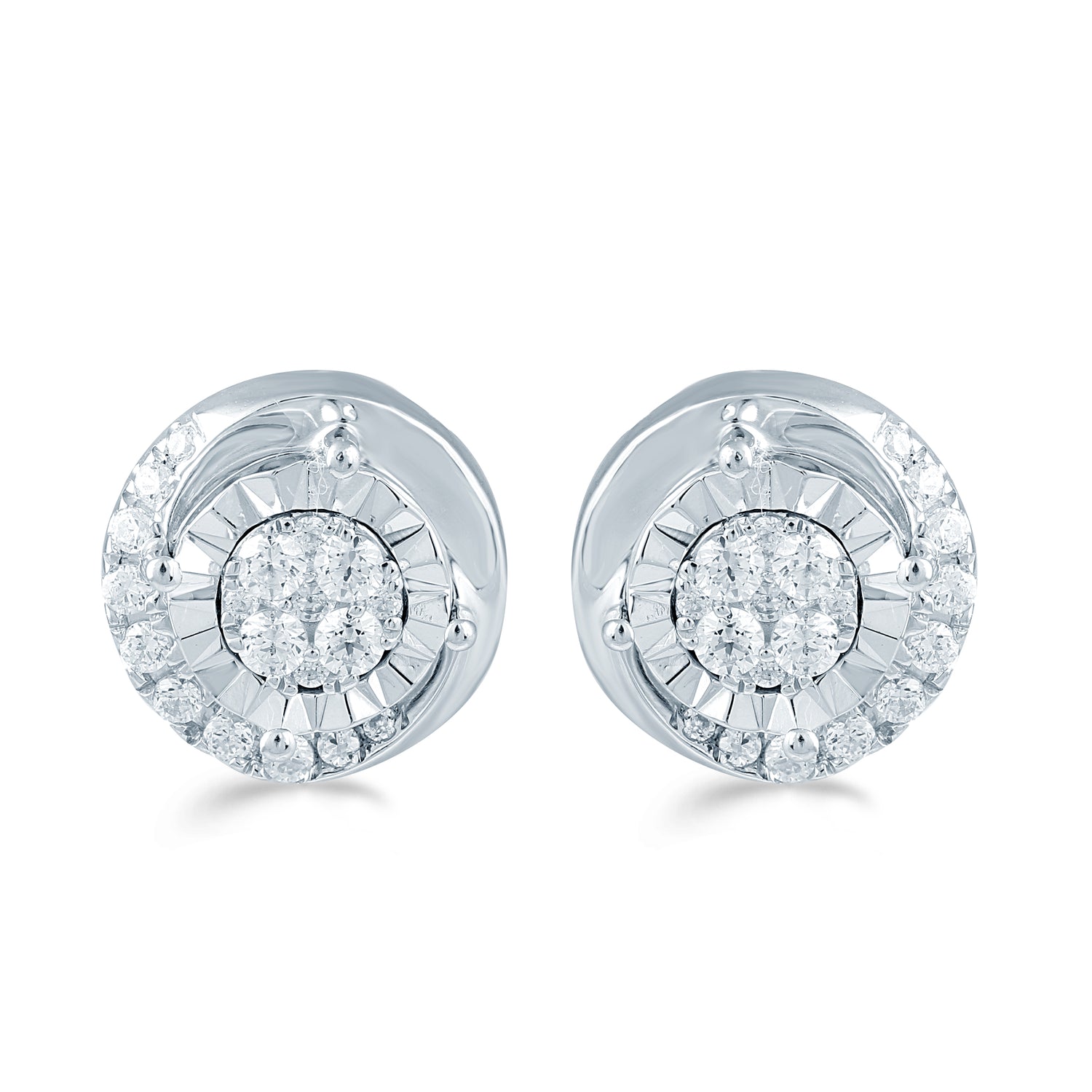 1/4 Cttw Diamond Cluster Floral Swirl Earring Set In Sterling Silver