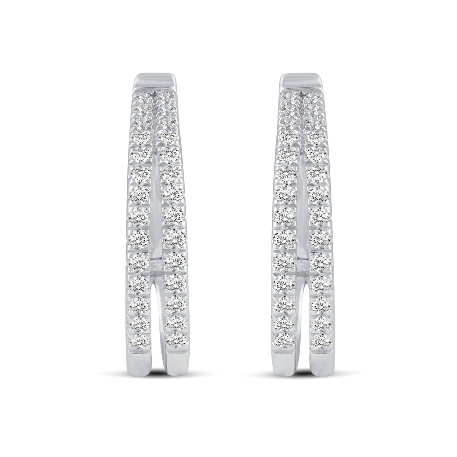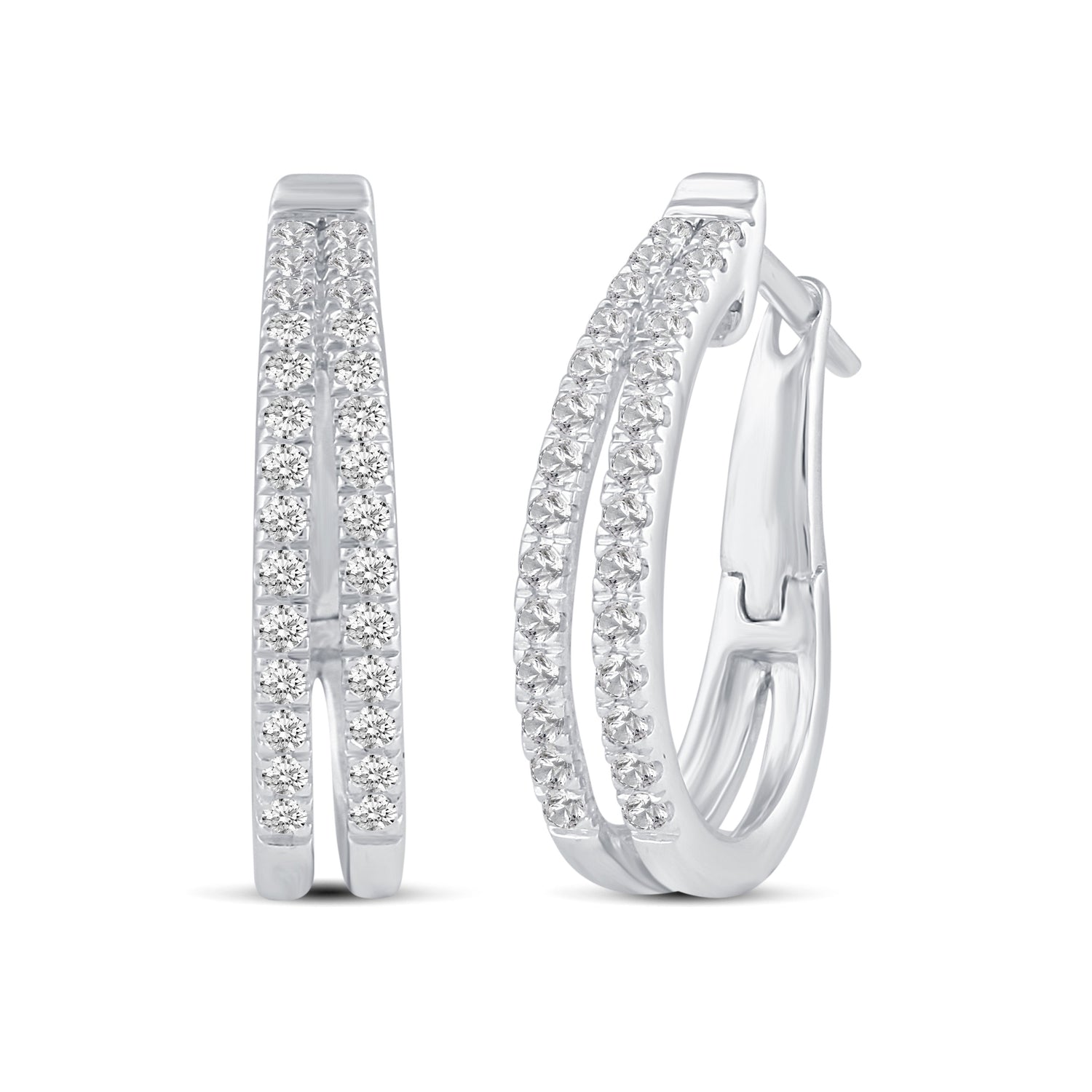 1/4 Cttw Diamond Double Row Hoop Earrings set in 925 Sterling Silver