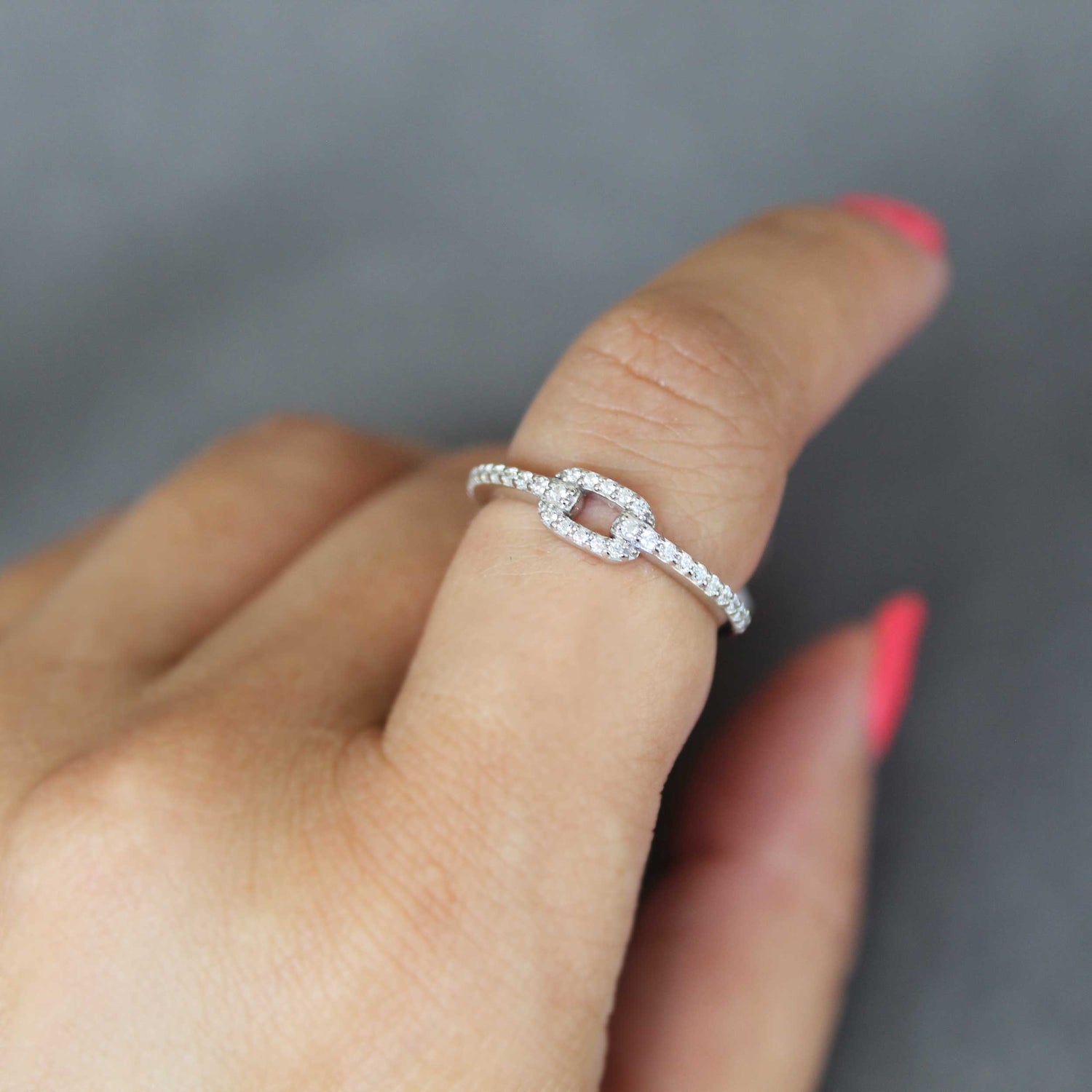 1/4Ct TW Diamond Single Chain Link Ring in Sterling Silver