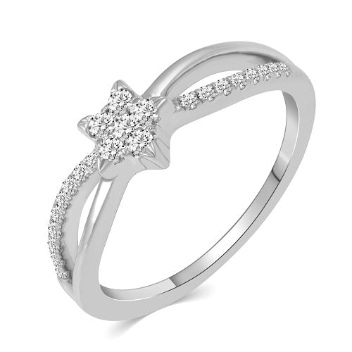 This Star Shaped center Promise ring is crafted in Sterling Silver and radiant with 28 Round Diamonds carrying total weight 1/4Ct tw