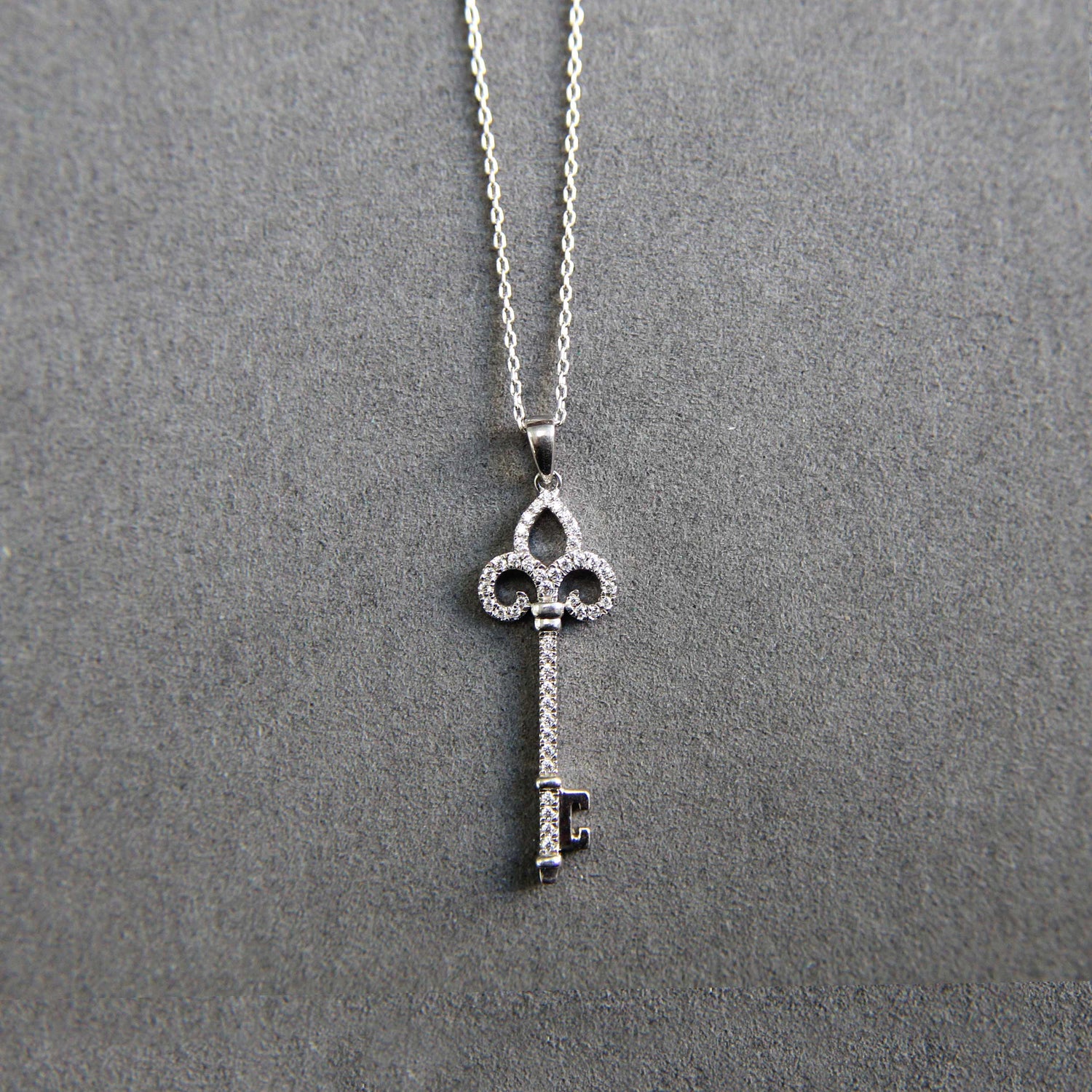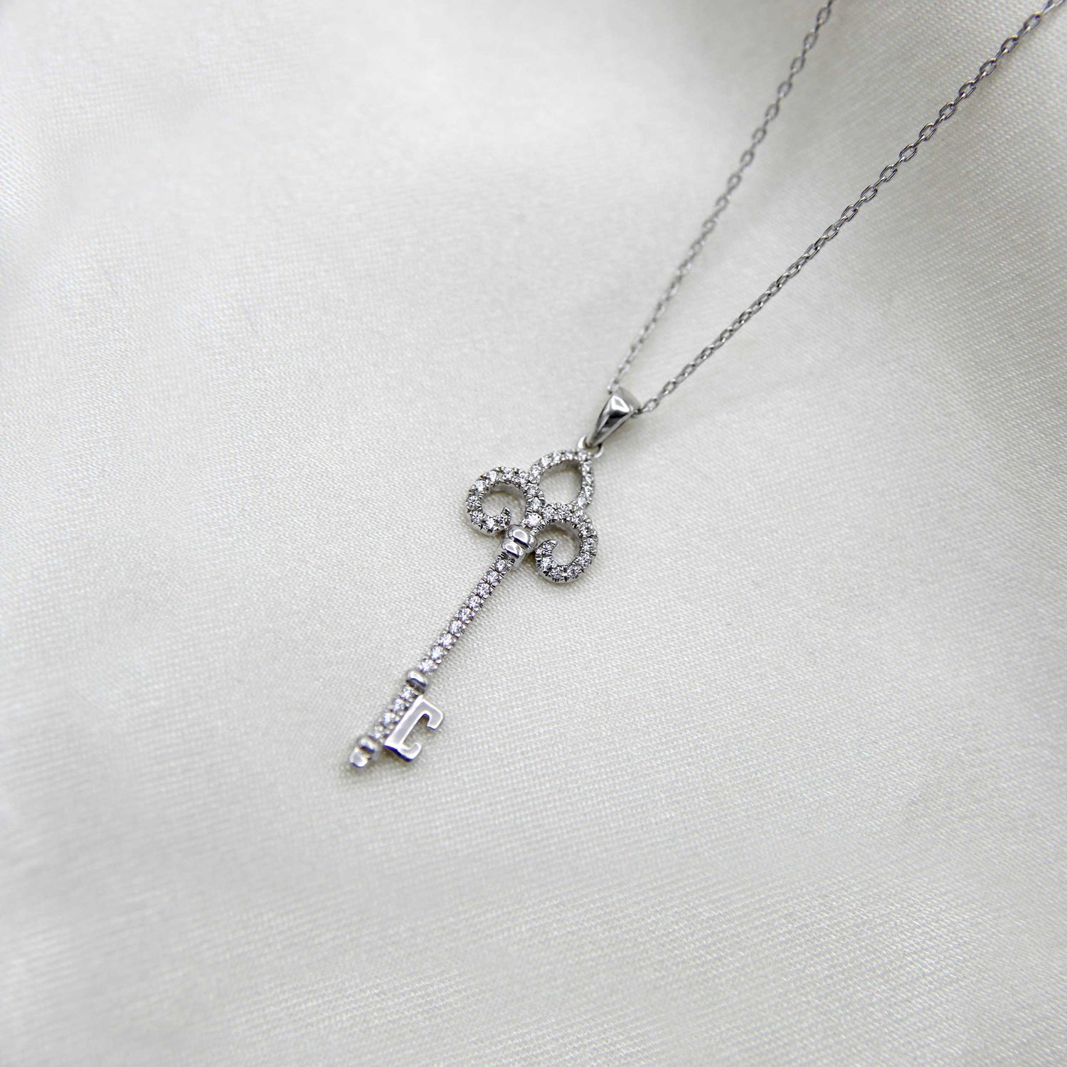 1/5 Cttw Diamond Key Enchanted Pendant Necklace set in 925 Sterling Silver