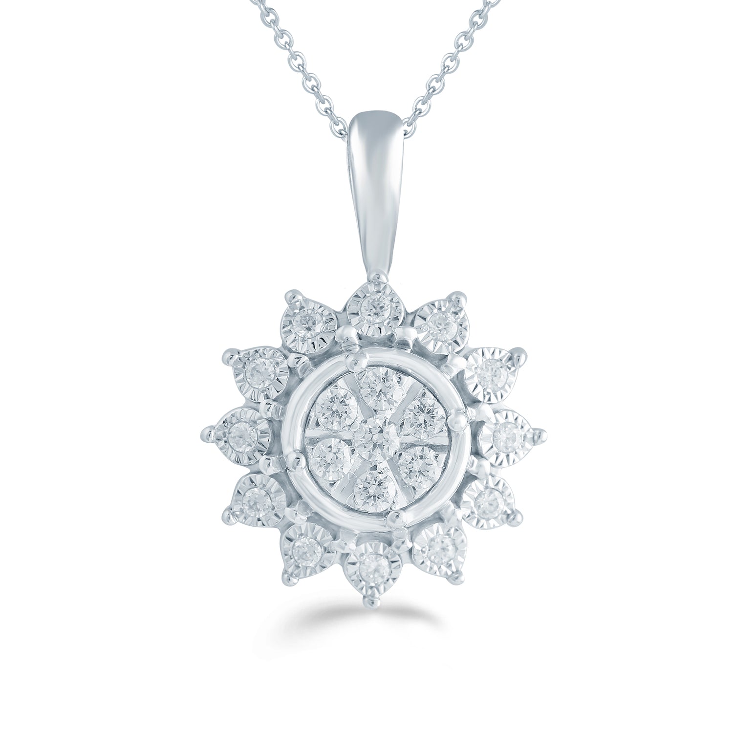 1/6CT TW Diamond Round Cluster Fashion Pendant in Sterling Silver