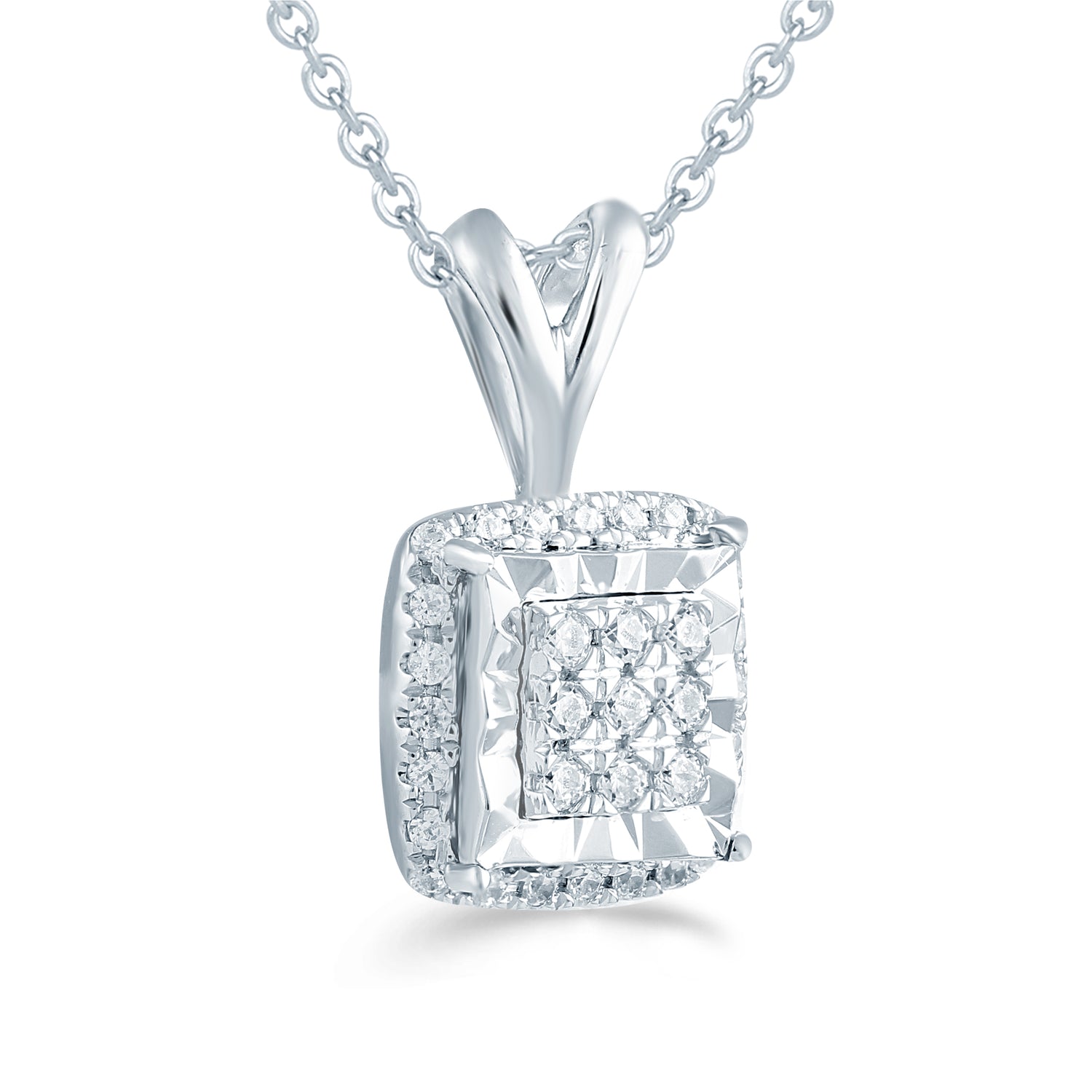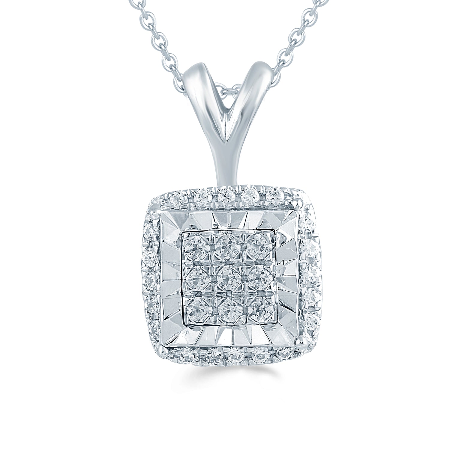 1/8CT TW Diamond Square Cluster Fashion Pendant in Sterling Silver