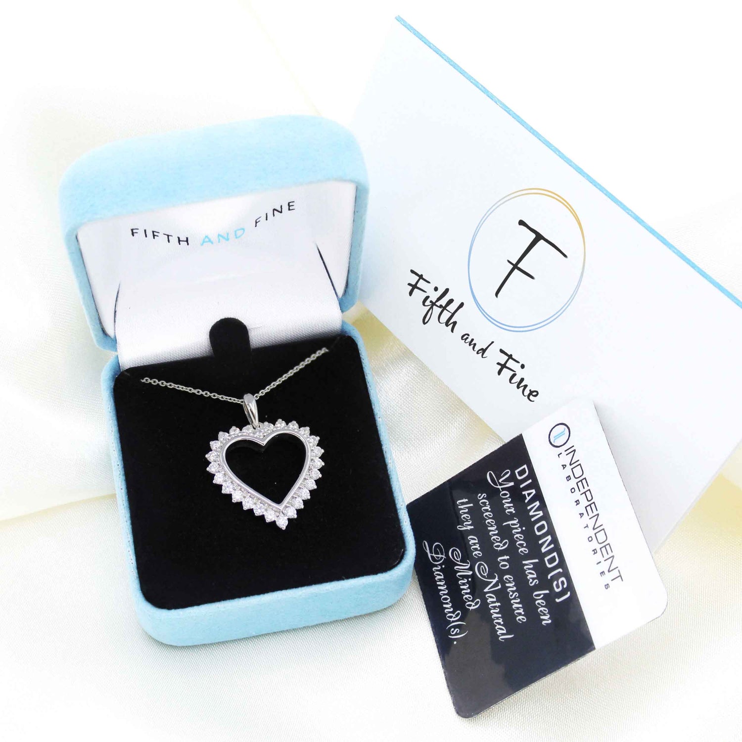 Outlined in shimmering diamonds totaling 3/4ct in weight, this heart-shaped necklace for her makes a romantic gift. Styled in Sterling Silver, the pendant suspends from an 18-inch Cable chain secured with lobster.