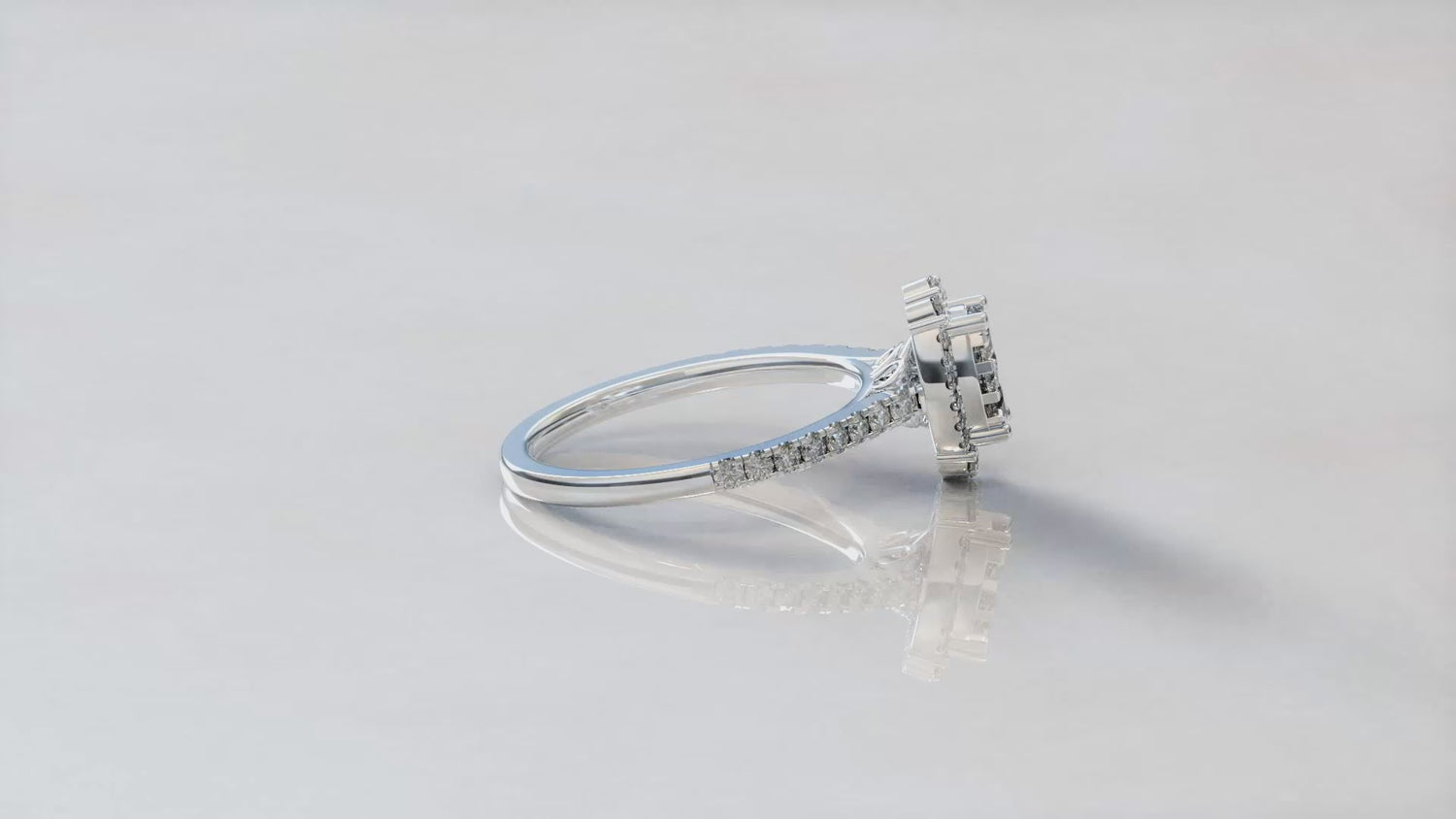 Diamond Grand Oval Halo Engagement Ring in Sterling silver. Brilliantly set diamonds in Pressure setting, giving a look of solitaire Engagement Ring.