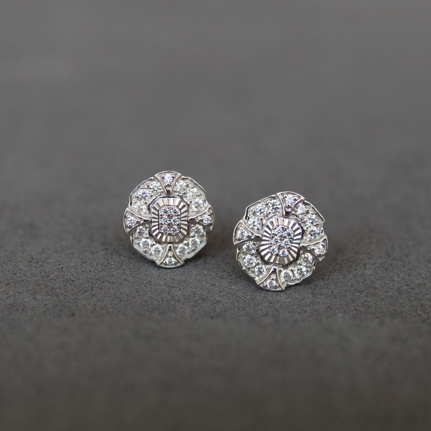 A Delicate Sterling Silver Emerald Design. 3/8Ct TW Diamond Emerald Cluster Fashion Stud Earring in Sterling Silver