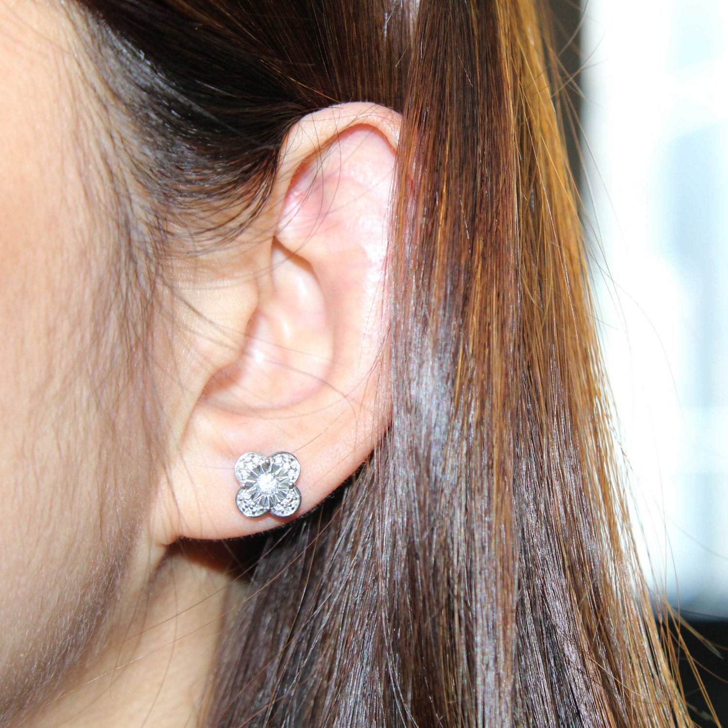 A Delicate Sterling Silver Floral Petal Design. 3/8Ct TW Diamond Floral Cluster Fashion Stud Earring in Sterling Silver
