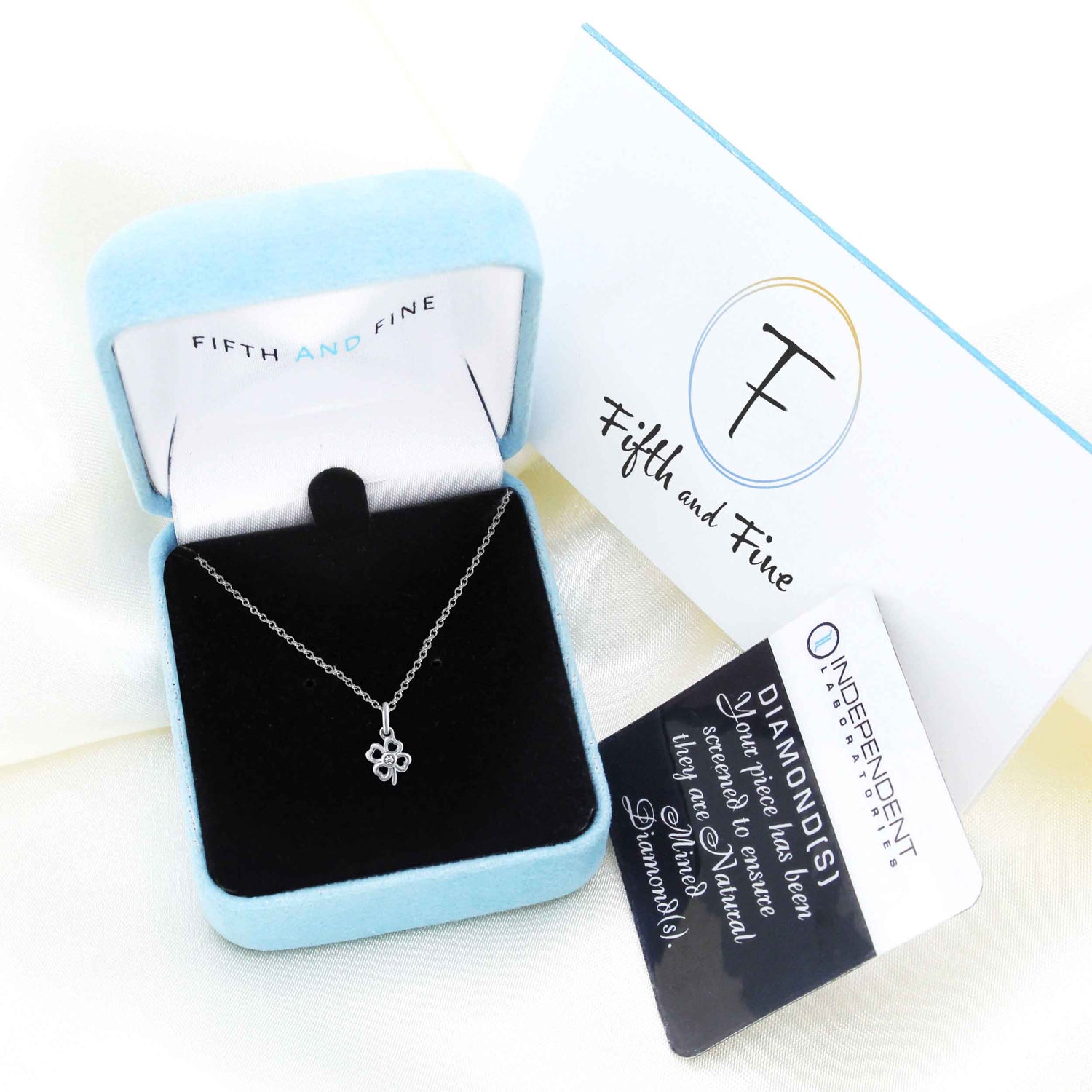 Four Leaf Clover 1/40 Cttw Natural Diamond Pendant Necklace set in 925 Sterling Silver