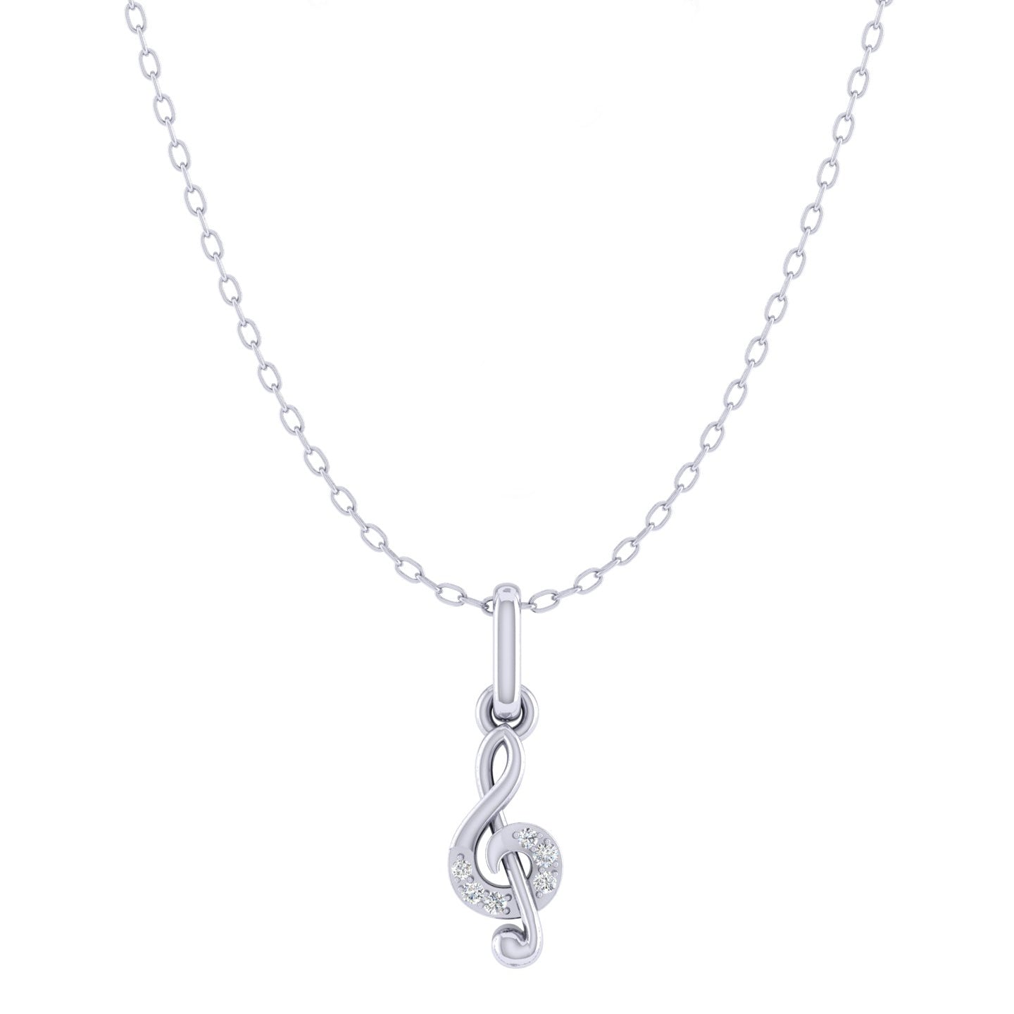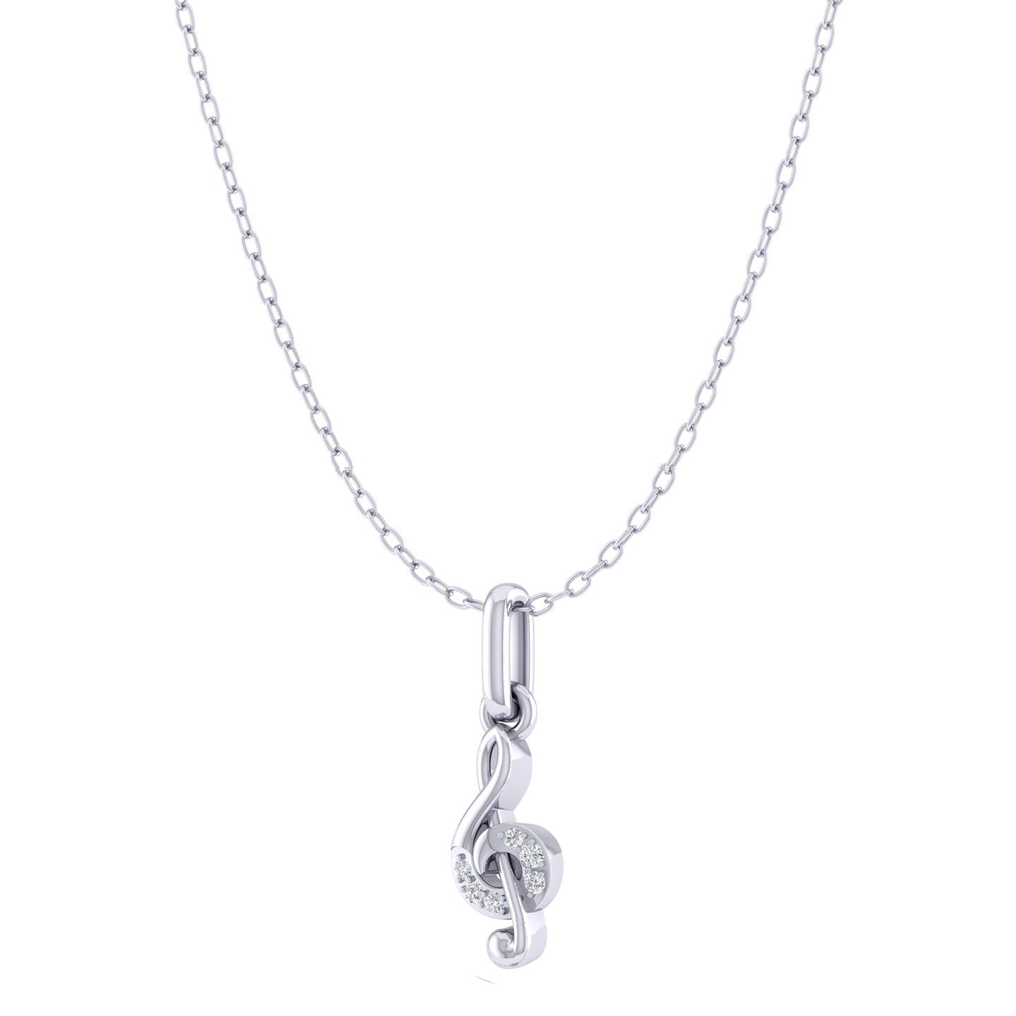 Musical Treble Clef 1/40 Cttw Natural Diamond Pendant Necklace set in 925 Sterling Silver