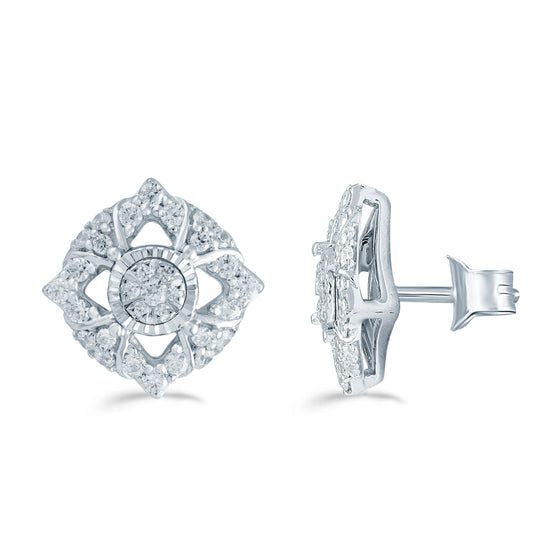 1/2Ct TW Diamond Square Cluster Fashion Stud Earring in Sterling Silver- Regular price