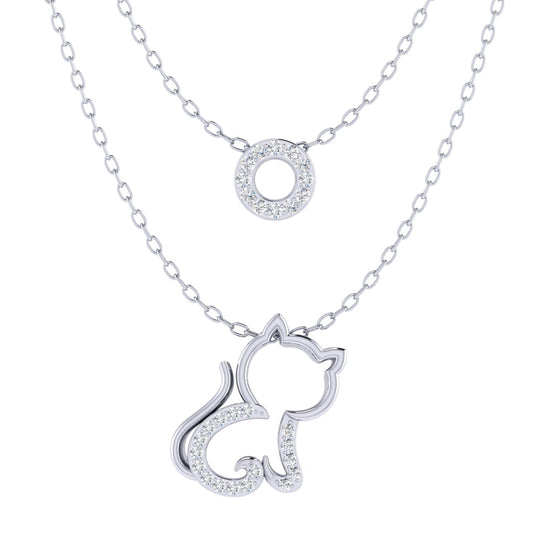 Circle and Kitty Cat Layered 1/10 Cttw Natural Diamond Pendant Necklace set in 925 Sterling Silver…