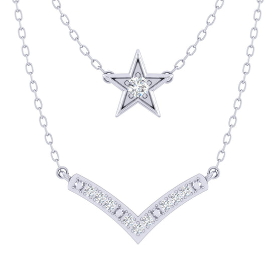 Star and Chevron Layered 1/10 Cttw Natural Diamond Pendant Necklace set in 925 Sterling Silver…