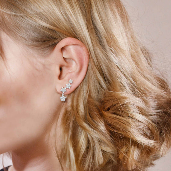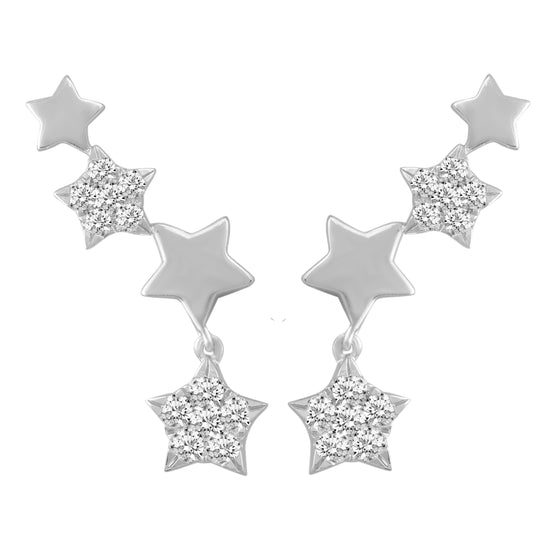 1/2 Carat Diamond Shooting Star Earrings in 925 Sterling Silver