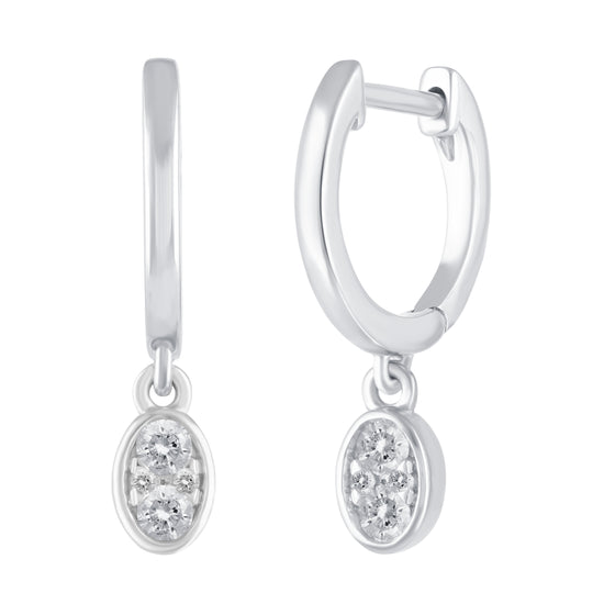 1/5 Ctw Natural Diamonds Oval Dangle Drop Hoop Earrings in 925 Sterling Silver- Regular price