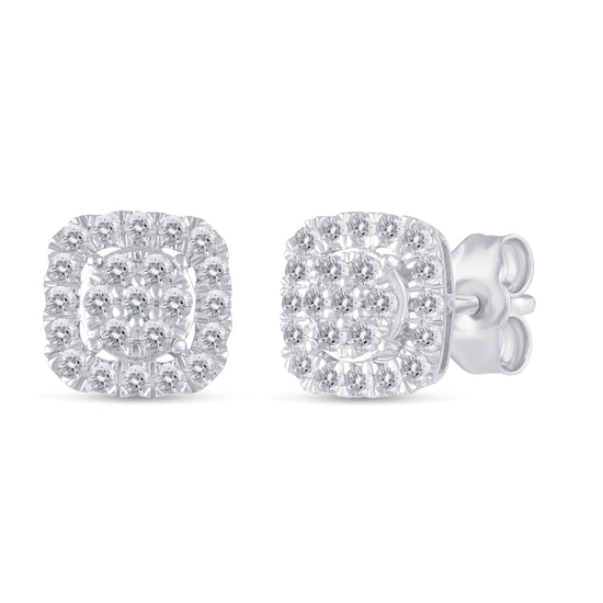 1/2Ct Diamond Halo Square Stud Earrings Set in 925 Sterling Silver