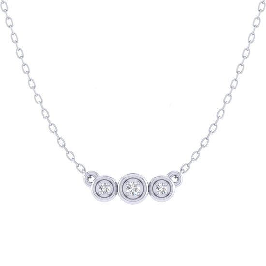 Curved Three Stone Bar 1/20 Cttw Natural Diamond Pendant Necklace set in 925 Sterling Silver