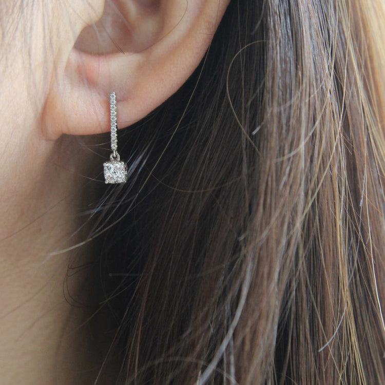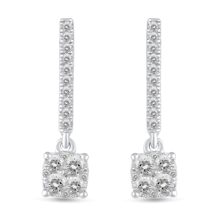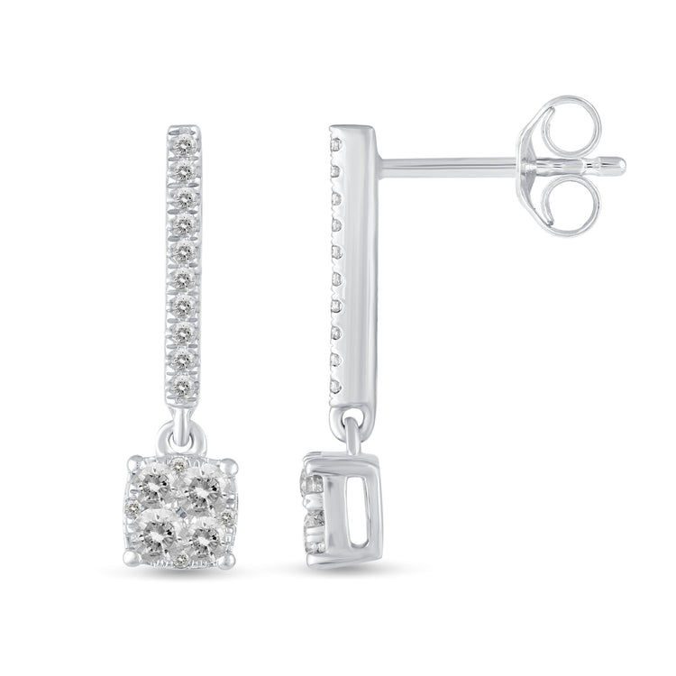 1/2 Ctw Natural Diamonds Cushion Dangle Drop Earrings in 925 Sterling Silver