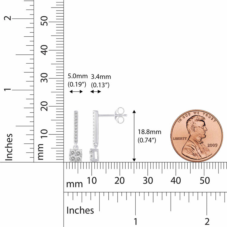 1/2 Ctw Natural Diamonds Dangle Drop Earrings in 925 Sterling Silver
