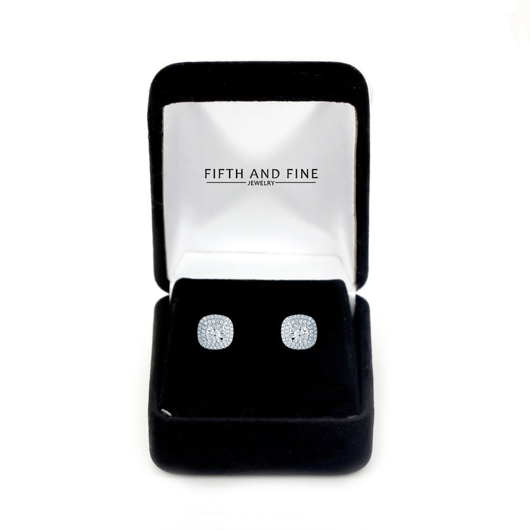 Cushion Cluster Halo Earrings. Uniquely crafted in Sterling Silver with a double halo around cluster of a 1/2CT.TW. Of Diamonds.