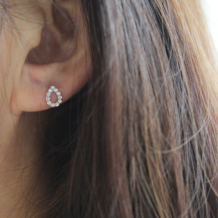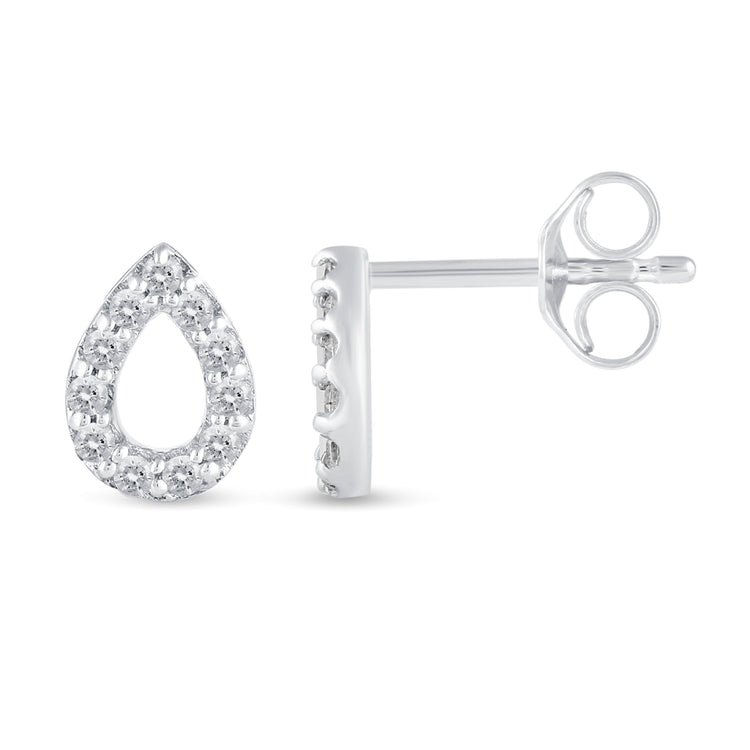 1/4 CTW Diamond Teardrop Pear Pave Stud Earrings set in 925 Sterling Silver