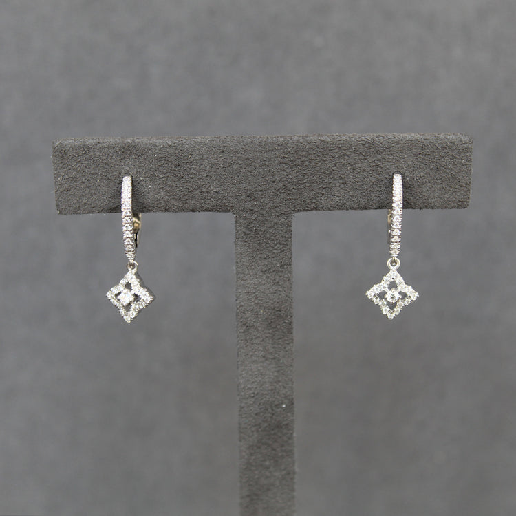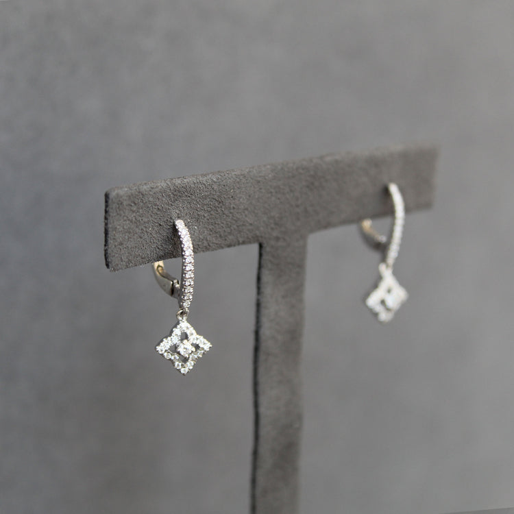1/4 Ctw Natural Diamonds Open flower Dangle Drop Hoop Earrings in 925 Sterling Silver