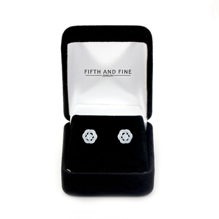 1/2Ct TW Diamond Floral Round Cluster Studs in Sterling Silver