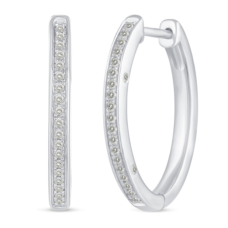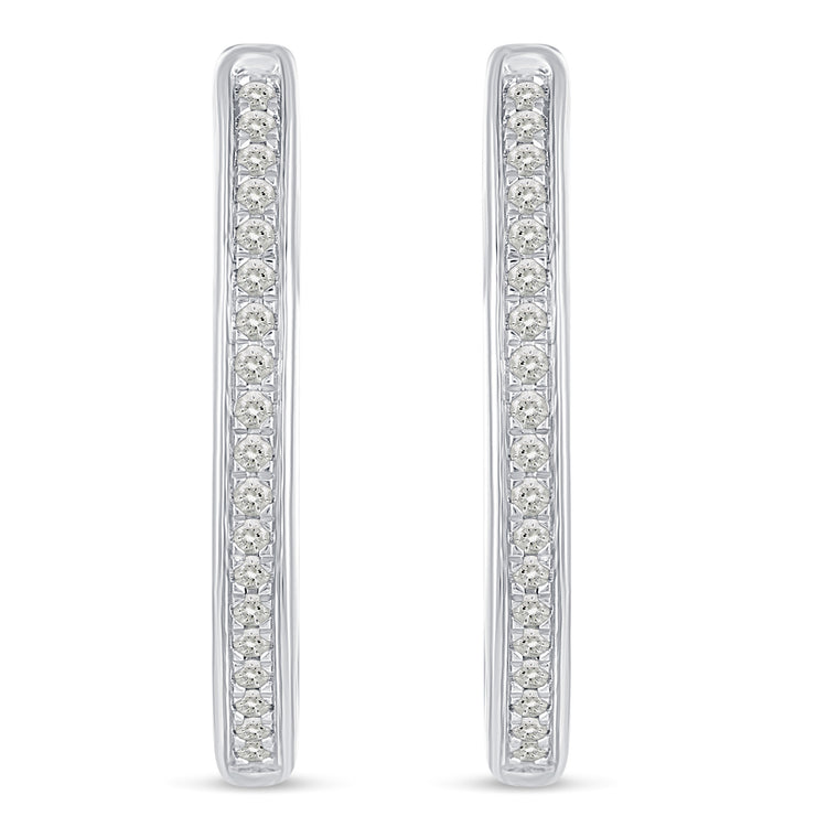1/4 Cttw Diamond Channel-Set Hoop Earrings set in 925 Sterling Silver