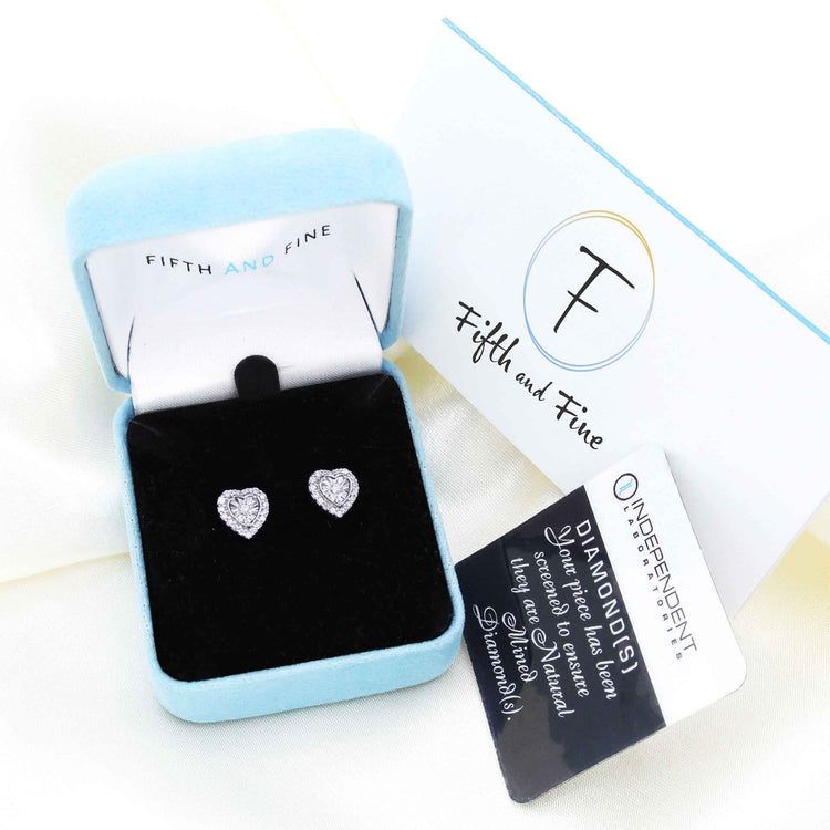 Sterling Silver Heart Shape Earrings. Brilliantly Set with a Solitaire and Surrounding Halo of 1/4CT.TW. of Diamonds