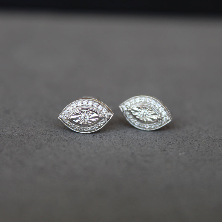 Sterling Silver Marquise-Shaped Earring. Brilliantly Set with a Solitaire and Surrounding Halo of 1/5CT.TW. of Diamonds in 925 Sterling Silver.