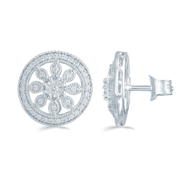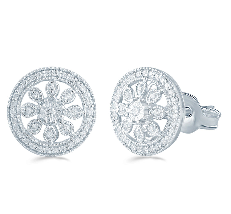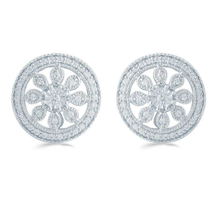 3/10 Cttw Diamond Vintage Cluster Flower Circle Earring In Sterling Silver