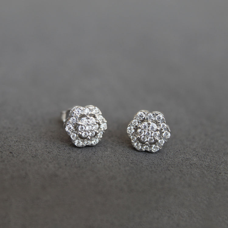 3/8Ct Diamond Halo Floral Stud Earrings Set in 925 Sterling Silver