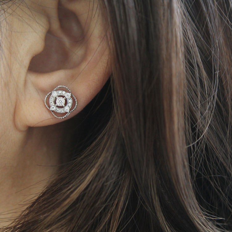 A Delicate Sterling Silver Floral Design. Outlines a Beautiful Layering. 1/5Ct TW Diamond Quatrefoil Cluster Fashion Stud Earring in Sterling Silver