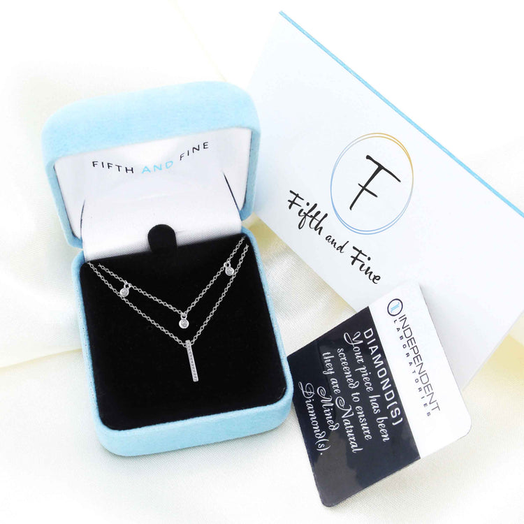 Three Stone Stations and Bar Layered 1/10 Cttw Natural Diamond Pendant Necklace set in 925 Sterling Silver