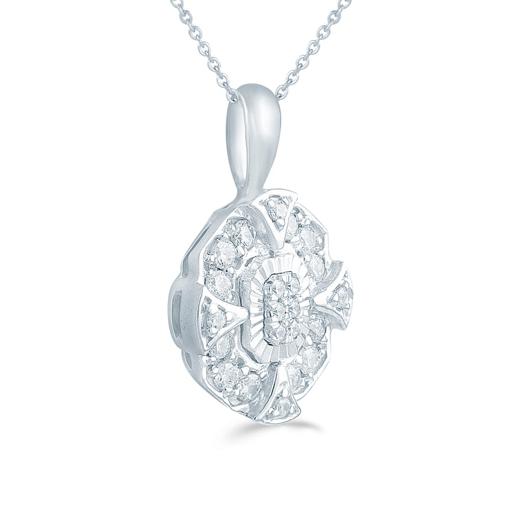 Featuring 22 genuine diamond stones, this cluster pendant can serve as a gift.