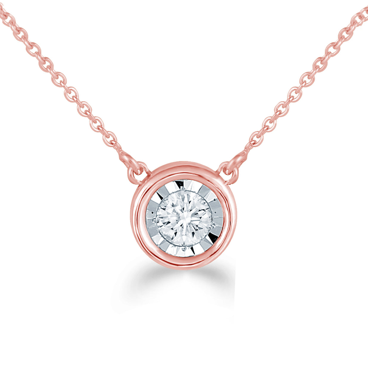 14K Gold Bezel 1/6-3/8 Carat TW Natural Round (I2 Clarity) Diamond Earring/Necklace/Set in 14K Gold